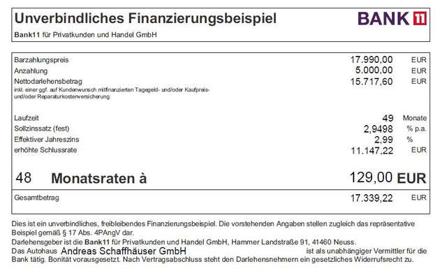 Eine Finanzierung ist über unsere Hausbank Bank 11 möglich.