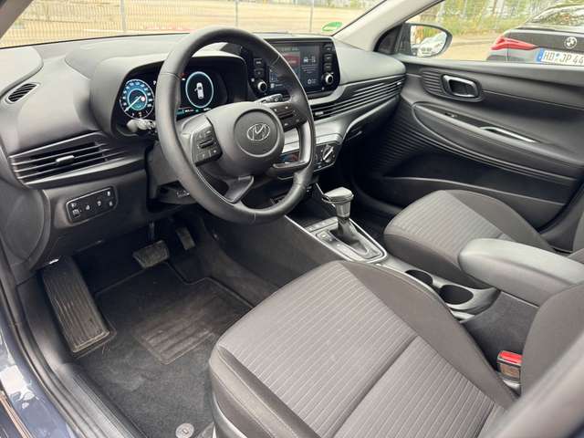 6 Lautsprecher, Airbag Beifahrerseite, Airbag Beifahrerseite abschaltbar, Airbag Fahrerseite, Aktives Bremslicht (ESS), Ambiente-Beleuchtung, Audiosystem: Radio RDS, Außenspiegel elektr. anklappbar, Außenspiegel elektr. verstell- und heizbar, beide, Außenspiegel lackiert, Blinkleuchte in Außenspiegel integriert, Bordcomputer, Bremsassistent, Dachspoiler, Digital Cockpit (Instrumentenanzeige Digital), Einschaltautomatik für Fahrlicht / Lichtsensor, Elektr. Bremskraftverteilung, Elektron. Stabilitätskontrolle (ESC) mit Bremsassistent, Fahrassistenz-System: aktiver Spurhalteassistent (LKAS, Lane Keep Assist System), Fahrassistenz-System: Aufmerksamkeits-Assistent, Fahrassistenz-System: Autonome Notbremsfunktion inkl. Frontkollisionswarnung (FCA), Fahrassistenz-System: Berganfahrhilfe, Fahrassistenz-System: Fahrprofilauswahl (Drive Mode), Fahrassistenz-System: Fernlichtassistent, Fahrassistenz-System: Insassenalarm (Rear Occopant Alert, ROA), Fahrassistenz-System: Multikollisionsbremse (Multi Collision Brake), Fahrassistenz-System: Sicherheitssystem mit automatischem Notruf (ERA GLONASS / eCall), Fahrassistenz-System: Verkehrszeichenerkennung, erweitert (Geschwindigkeits-Regel-/Begrenzeranlage), Fensterheber elektrisch hinten, Freisprecheinrichtung Bluetooth, Funktions-Paket, Gegenlenkunterstützung (Vehicle Stability Management, VSM), Gepäck-/Laderaumleuchte, Gepäckraumabdeckung / Rollo, Getriebe 7-Gang - Doppelkupplungsgetriebe DCT, Getränkehalter vorn, Gurtstraffer, Heckscheibe heizbar, Induktionsladeschale für Smartphone, Isofix-Aufnahmen für Kindersitz, Karosserie: 5-türig, Kopf-Airbag-System, Kopfstützen hinten verstellbar, Kühlergrill schwarz (glanzlackiert), Lenkrad (4-Speichen), Lenksäule (Lenkrad) höhenverstellbar, Lenksäule (Lenkrad) längsverstellbar, Leseleuchte, LM-Felgen, Mild-Hybrid 74 kW (Motor 1,0 Ltr. - 74 kW T-GDI), Motorhaubenisolierung, Otto-Partikelfilter (OPF), Radioempfang digital (DAB+), Reifen-Reparaturkit, Reifendruck-Kontrollsystem, Rückfahrkamera, Rücksitzlehne geteilt/klappbar, Schadstoffarm nach Abgasnorm Euro 6d, Schalt-/Wählhebelgriff Leder, Seitenairbag vorn, Sicherheitsgurte vorn höhenverstellbar, Sitz vorn links höhenverstellbar, Sitzbezug / Polsterung: Stoff, Sonnenblenden mit Spiegel (beleuchtet), Start/Stop-Anlage, Steckdose (12V-Anschluß) vorn, Türgriffe außen Wagenfarbe, Türgriffe innen lackiert, USB-Anschluss + AUX-IN-Anschluss, USB-Anschluss hinten, USB-Anschluss Mittelkonsole, Verglasung getönt, Warnanlage für Sicherheitsgurte, Fahrer-/Beifahrerseite, Wireless SmartLink (Apple CarPlay)..................................