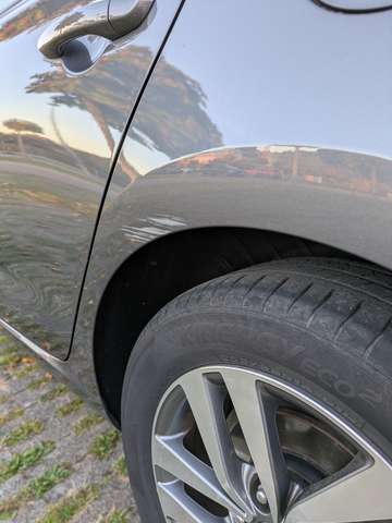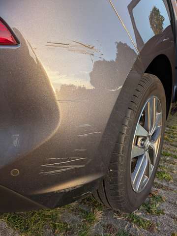 Optisch gibt es ein paar Kratzer hinten links und rechts an den Radkästen sowie einen Hagelschaden auf Motorhaube und Dach – alles rein kosmetisch und ohne Einfluss auf die Funktion oder Fahrsicherheit.