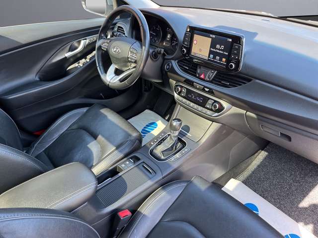 6 Lautsprecher, Ablagebox / Stauraum unter Kofferraumboden, Airbag Beifahrerseite, Airbag Beifahrerseite abschaltbar, Airbag Fahrerseite, Audiosystem: Radio RDS, Außenspiegel elektr. anklappbar, Außenspiegel lackiert, Blinkleuchte in Außenspiegel integriert, Bremsassistent, Dachspoiler, Einschaltautomatik für Fahrlicht / Lichtsensor, Elektr. Bremskraftverteilung, Elektron. Stabilitätskontrolle (ESC) mit Bremsassistent, Fahrassistenz-System: aktiver Spurhalteassistent (LKAS, Lane Keep Assist System), Fahrassistenz-System: Aufmerksamkeits-Assistent, Fahrassistenz-System: Berganfahrhilfe, Fahrassistenz-System: Fahrprofilauswahl (Drive Mode), Fahrassistenz-System: Fernlichtassistent, Fensterheber elektrisch hinten, Fensterheber elektrisch vorn und hinten, mit Auf-/Ab-Automatik, Fensterzierleisten verchromt, Freisprecheinrichtung Bluetooth, Funktions-Paket, Gegenlenkunterstützung (Vehicle Stability Management, VSM), Gepäck-/Laderaumleuchte, Gepäckraumabdeckung / Rollo, Getriebe 7-Gang - Doppelkupplungsgetriebe DCT, Getränkehalter vorn, Heckleuchten LED, Heckscheibe heizbar, Induktionsladeschale für Smartphone, Isofix-Aufnahmen für Kindersitz, Karosserie: 5-türig, Kombi-Paket, Komfort-Paket, Kopf-Airbag-System, Kopfstützen hinten verstellbar, Kühlergrill mit Chromrand, Lendenwirbelstütze Sitz vorn rechts, elektr. verstellbar, Lenkrad heizbar, Lenkrad mit Schaltwippen, Leseleuchte, LM-Felgen, Mittelarmlehne hinten mit Getränkehalter, Motor 1,6 Ltr. - 100 kW CRDi KAT (1598 ccm), Motorhaubenisolierung, Radioempfang digital (DAB+), Reifen-Reparaturkit, Reifendruck-Kontrollsystem, Rückfahrkamera, Rücksitzlehne geteilt/klappbar, Schadstoffarm nach Abgasnorm Euro 6d-TEMP, Scheinwerfer LED, Seitenairbag vorn, Seitenscheiben ab B-Säule abgedunkelt, Sicherheits-Paket DCT, Sicherheitsgurte vorn höhenverstellbar, Sitz vorn links höhenverstellbar, Sitz vorn links mit ausziehbarer Oberschenkelauflage, Sitz vorn rechts höhenverstellbar, Sitz vorn rechts mit ausziehbarer Oberschenkelauflage, Sitzheizung vorn, Smartphone Schnittstelle (Apple CarPlay & Android Auto), Sonnenblenden mit Spiegel (beleuchtet), Start/Stop-Anlage, Steckdose (12V-Anschluß) im Koffer-/Laderaum, Stoßfänger Wagenfarbe, Touchscreen-Farbdisplay (8,0 Zoll), Türgriffe außen verchromt, Türgriffe außen, Griffmulde beleuchtet, Türgriffe innen verchromt, USB-Anschluss + AUX-IN-Anschluss, Verglasung getönt, Zündschloss beleuchtet