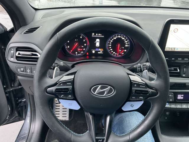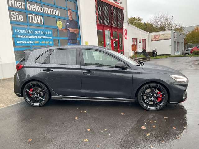 6 Lautsprecher, Ablagetasche an Vordersitzlehnen, Airbag Beifahrerseite, Airbag Beifahrerseite abschaltbar, Airbag Fahrerseite, Aktives Bremslicht (ESS), Audiosystem: Radio RDS, Auspuffanlage mit Klappensteuerung, Außenspiegel elektr. anklappbar, Außenspiegel elektr. verstell- und heizbar, beide, Außenspiegel mit Umfeldleuchte, Außenspiegel schwarz glänzend, Blinkleuchte in Außenspiegel integriert, Bordcomputer, Bremsassistent, Bremssättel rot lackiert, Dachhimmel schwarz, Dachspoiler schwarz, Diffusoreinsatz Heckspoiler (schwarz, glanzlackiert), Einschaltautomatik für Fahrlicht / Lichtsensor, Elektr. Bremskraftverteilung, Elektron. Differentialsperre (EDS) N Corner Carving Differential, Elektron. Stabilitätskontrolle (ESC) mit Bremsassistent, Fahrassistenz-System: aktiver Spurhalteassistent (LKAS, Lane Keep Assist System), Fahrassistenz-System: Aufmerksamkeits-Assistent, Fahrassistenz-System: Autonome Notbremsfunktion inkl. Frontkollisionswarnung (FCA), Fahrassistenz-System: Berganfahrhilfe, Fahrassistenz-System: Einparkhilfe vorn und hinten, Fahrassistenz-System: Fernlichtassistent, Fahrassistenz-System: Intelligente Beschleunigungskontrolle (Launch-Control), Fahrassistenz-System: Sicherheitssystem mit automatischem Notruf (ERA GLONASS / eCall), Fahrassistenz-System: Verkehrsschildassistent, Fahrer-Informations-System (Display 4,2 Zoll), Fensterheber elektrisch hinten, Fensterheber elektrisch vorn und hinten, mit Auf-/Ab-Automatik, Fensterrahmen Zierleisten schwarz glänzend, Freisprecheinrichtung Bluetooth, Frontscheibe mit Bandfilter oben, Frontscheibe wärmedämmend, Gegenlenkunterstützung (Vehicle Stability Management, VSM), Gepäck-/Laderaumleuchte, Gepäckraumabdeckung / Rollo, Getriebe 8-Gang - Doppelkupplungsgetriebe DCT, Getränkehalter hinten, Getränkehalter vorn, Gurtstraffer, Heckleuchten LED, Heckscheibe heizbar, Induktionsladeschale für Smartphone, Innenspiegel mit Abblendautomatik, Isofix-Aufnahmen für Kindersitz, Karosserie: 5-türig, Klimaautomatik 2-Zonen, Kopf-Airbag-System, Kopfstützen hinten verstellbar, Kühlergrill schwarz (glanzlackiert), Lendenwirbelstütze Sitz vorn links, elektr. verstellbar, Lenkrad (Sport/Leder), Lenkrad heizbar, Lenkrad mit Schaltwippen, Lenksäule (Lenkrad) verstellbar (vertikal / axial), Leseleuchten vorn und hinten LED, Leuchtweitenregelung, LM-Felgen, Mittelarmlehne hinten mit Getränkehalter, Modellpflege, Motor 2,0 Ltr. - 206 kW TGDI KAT, Motorhaubenisolierung, Navigations-Paket, Otto-Partikelfilter (OPF), Pedale Aluminium, Radioempfang digital (DAB+), Reifen-Reparaturkit, Reifendruck-Kontrollsystem, Rückfahrkamera, Rücksitzlehne geteilt/klappbar, Schadstoffarm nach Abgasnorm Euro 6d, Schalt-/Wählhebelgriff Leder mit Metall-Applikationen, Scheibenbeschlagerkennung / Regelung, Scheinwerfer LED, Seitenairbag vorn, Seitenscheiben ab B-Säule abgedunkelt, Seitenschweller schwarz, Sicherheitsgurte vorn höhenverstellbar, Sitz vorn links höhenverstellbar, Sitz vorn links mit ausziehbarer Oberschenkelauflage, Sitz vorn rechts höhenverstellbar, Sitzheizung vorn, Smartphone Schnittstelle (Apple CarPlay & Android Auto), Sonnenblenden mit Spiegel (beleuchtet), Sportfahrwerk, Sportsitze, Start-Stop-Knopf, Start/Stop-Anlage, Steckdose (12V-Anschluß) im Koffer-/Laderaum, Stoßfänger Wagenfarbe, Tagfahrlicht LED mit Blinker Funktion, Türgriffe außen Wagenfarbe, USB-Anschluss + AUX-IN-Anschluss, Verglasung getönt, Warnanlage für Sicherheitsgurte, Fahrer-/Beifahrerseite, Zwischengas-Funktion