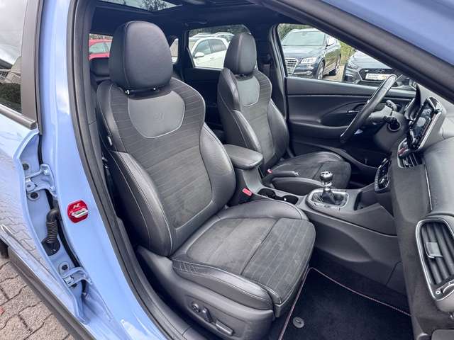 6 Lautsprecher, Airbag Beifahrerseite, Airbag Beifahrerseite abschaltbar, Airbag Fahrerseite, Audiosystem: Radio RDS, Außenspiegel schwarz glänzend, Blinkleuchte in Außenspiegel integriert, Bordcomputer, Bremsassistent, Bremssättel rot lackiert, Dachhimmel schwarz, Dachspoiler, Einschaltautomatik für Fahrlicht / Lichtsensor, Elektr. Bremskraftverteilung, Elektron. Differentialsperre (EDS) N Corner Carving Differential, Elektron. Stabilitätskontrolle (ESC) mit Bremsassistent, Fahrassistenz-System: aktiver Spurhalteassistent (LKAS, Lane Keep Assist System), Fahrassistenz-System: Aufmerksamkeits-Assistent, Fahrassistenz-System: Autonome Notbremsfunktion inkl. Frontkollisionswarnung (FCA), Fahrassistenz-System: Berganfahrhilfe, Fahrassistenz-System: Fernlichtassistent, Fahrer-Informations-System (Display 4,2 Zoll), Fensterheber elektrisch hinten, Fensterheber elektrisch vorn und hinten, mit Auf-/Ab-Automatik, Fensterrahmen Zierleisten schwarz glänzend, Freisprecheinrichtung Bluetooth, Frontscheibe mit Bandfilter oben, Funktions-Paket, Gegenlenkunterstützung (Vehicle Stability Management, VSM), Gepäck-/Laderaumleuchte, Gepäckraumabdeckung / Rollo, Getränkehalter vorn, Heckleuchten LED, Heckscheibe heizbar, Innenspiegel mit Abblendautomatik, Isofix-Aufnahmen für Kindersitz, Karosserie: 5-türig, Klimaautomatik 2-Zonen, Kopf-Airbag-System, Kopfstützen hinten verstellbar, Kühlergrill schwarz (mattlackiert), Lendenwirbelstütze Sitz vorn links, elektr. verstellbar, Lenkrad (Sport), Lenkrad heizbar, Leseleuchte, Leuchtweitenregelung, LM-Felgen, Mittelarmlehne hinten mit Getränkehalter, Motor 2,0 Ltr. - 202 kW TGDI KAT, Motorhaubenisolierung, Otto-Partikelfilter (OPF), Pedale Aluminium, Radioempfang digital (DAB+), Reifen-Reparaturkit, Reifendruck-Kontrollsystem, Rückfahrkamera, Rücksitzlehne geteilt/klappbar, Schadstoffarm nach Abgasnorm Euro 6d-TEMP, Schalt-/Wählhebelgriff Leder mit Metall-Applikationen, Scheibenbeschlagerkennung / Regelung, Scheinwerfer LED, Seitenairbag vorn, Seitenscheiben ab B-Säule abgedunkelt, Sicherheitsgurte vorn höhenverstellbar, Sitz vorn links höhenverstellbar, Sitz vorn links mit ausziehbarer Oberschenkelauflage, Sitz vorn rechts höhenverstellbar, Sitzheizung vorn, Smartphone Schnittstelle (Apple CarPlay & Android Auto), Sonnenblenden mit Spiegel (beleuchtet), Sportfahrwerk, Sportsitze, Start/Stop-Anlage, Steckdose (12V-Anschluß) im Koffer-/Laderaum, Stoßfänger Wagenfarbe, Touchscreen-Farbdisplay (8,0 Zoll), Türgriffe außen Wagenfarbe, USB-Anschluss + AUX-IN-Anschluss, Verglasung getönt...