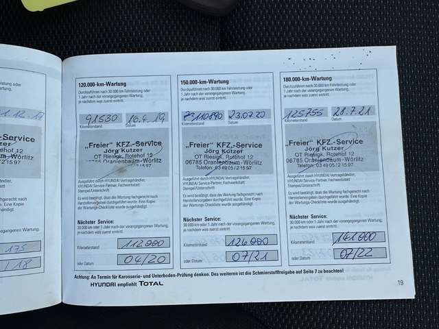 Airbag Beifahrerseite abschaltbar, Airbag Fahrer-/Beifahrerseite, Aktive Kopfstützen vorn, Audiosystem: Radio mit CD-Player (MP3-fähig), Außenspiegel asphärisch, Außenspiegel elektr. verstell- und heizbar, beide, Außenspiegel lackiert, Blinkleuchte in Außenspiegel integriert, Bluetooth-Schnittstelle, Bordcomputer, Bremsassistent, Dachreling, Dachspoiler, Einschaltautomatik für Fahrlicht / Lichtsensor, Elektr. Bremskraftverteilung, Fahrassistenz-System: Berganfahrhilfe, Fensterheber elektrisch vorn + hinten, Freisprecheinrichtung Bluetooth, Füllstandsanzeige Scheibenwaschanlage, Gegenlenkunterstützung (Vehicle Stability Management, VSM), Gepäckraumabdeckung / Rollo, Getränkehalter vorn, Gurtstraffer, Heckscheibe heizbar, Innenraumfilter: Pollenfilter, Isofix-Aufnahmen für Kindersitz, Karosserie: 5-türig, Knieairbag, Kopf-Airbag-System, Lenksäule (Lenkrad) verstellbar, Mittelarmlehne hinten mit Getränkehalter, Motor 1,7 Ltr. - 100 kW CRDi KAT, Parkbremse elektrisch (EPB), Reifen-Reparaturkit, Rücksitzlehne geteilt/klappbar, Schadstoffarm nach Abgasnorm Euro 5, Schalt-/Wählhebelgriff Leder, Seitenairbag vorn, Seitenaufprallschutz, Sicherheitsgurte vorn höhenverstellbar, Sitz vorn links höhenverstellbar, Sitzbezug / Polsterung: Stoff, Sonnenblenden mit Spiegel (beleuchtet), Türgriffe außen Wagenfarbe, Verglasung getönt