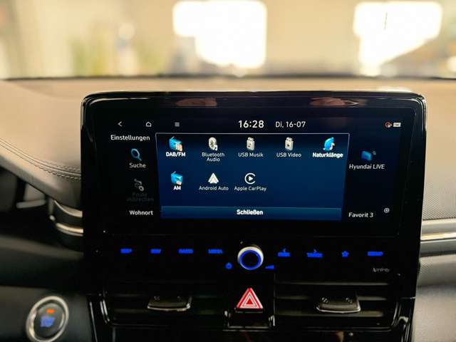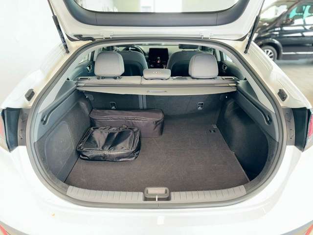 3. Bremsleuchte, Ablagetasche an Vordersitzlehnen, Airbag Beifahrerseite, Airbag Beifahrerseite abschaltbar, Airbag Fahrerseite, Audio-/Radio-Fernbedienung am Lenkrad, Audio-Navigationssystem, Außenspiegel elektr. verstell- und heizbar, beide, Außenspiegel lackiert, Blinkleuchte in Außenspiegel integriert, Bordcomputer, Bremsassistent, Einparkhilfe hinten, Einschaltautomatik für Fahrlicht / Lichtsensor, Elektr. Bremskraftverteilung, Elektromotor 100 kW (cont. 26 kW), Elektron. Stabilitätskontrolle (ESC) mit Bremsassistent, Fahrassistenz-System: Aufmerksamkeits-Assistent, Fahrassistenz-System: Autonome Notbremsfunktion inkl. Frontkollisionswarnung (FCA), Fahrassistenz-System: Berganfahrhilfe, Fahrassistenz-System: Fahrprofilauswahl (Drive Mode), Fahrassistenz-System: Fernlichtassistent, Fahrassistenz-System: Sicherheitssystem mit automatischem Notruf (ERA GLONASS / eCall), Fahrassistenz-System: Spurhalteassistent, Warnsystem (LDWS, Lane Departure Warning System), Fensterheber elektrisch vorn + hinten, Freisprecheinrichtung Bluetooth, Gegenlenkunterstützung (Vehicle Stability Management, VSM), Gepäcknetz im Koffer-/Laderaum, Gepäckraumabdeckung / Rollo, Geschwindigkeits-Regelanlage (Tempomat) mit Abstandsregelung ACC, Getriebe für Elektrofahrzeug, Gurtstraffer, Heckscheibe heizbar, Heckspoiler mit integrierter Bremsleuchte, Isofix-Aufnahmen für Kindersitz, Karosserie: 5-türig, Klimaautomatik, Kopf-Airbag-System, Kopfstützen hinten verstellbar, Lendenwirbelstütze Sitz vorn links, elektr. verstellbar, Lenkrad heizbar, Lenkrad mit Schaltwippen, Leseleuchte, Licht-aus-Automatik, LM-Felgen, Mittelarmlehne hinten mit Getränkehalter, Modellpflege, Notladekabel (ICCB), Parkbremse elektrisch (EPB), Projektor-Scheinwerfer, Radioempfang digital (DAB+), Reifen-Reparaturkit, Reifendruck-Kontrollsystem, Rückfahrkamera, Rücksitzlehne geteilt/klappbar, Schalt-/Wählhebelgriff Leder, Scheibenbeschlagerkennung / Regelung, Seitenairbag vorn, Seitenaufprallschutz, Service-System: Remote Services (Blue Link), Servolenkung elektronisch gesteuert, Sicherheitsgurte vorn höhenverstellbar, Sitz vorn links höhenverstellbar, Sitz vorn rechts höhenverstellbar, Sitzbezug / Polsterung: Stoff, Sitzheizung vorn, Sonnenblenden mit Spiegel (beleuchtet), Sound-System Infinity (8 Lautsprecher), Stoßfänger Wagenfarbe, Trend-Paket, Türgriffe außen Wagenfarbe, Verglasung getönt, Warnanlage für Sicherheitsgurte, Fahrer-/Beifahrerseite