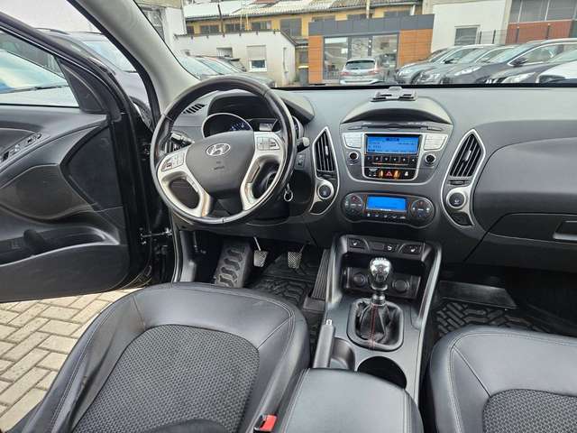 3. Bremsleuchte, 6 Lautsprecher, Ablagetasche an Vordersitzlehnen, Airbag Beifahrerseite abschaltbar, Airbag Fahrer-/Beifahrerseite, Aktive Kopfstützen vorn, Audio-/Radio-Fernbedienung am Lenkrad, Audiosystem: Radio mit CD-Player (MP3-fähig), Außenspiegel elektr. anklappbar, Außenspiegel elektr. verstell- und heizbar, beide, Außenspiegel lackiert, Außentemperaturanzeige, Blinkleuchte in Außenspiegel integriert, Bordcomputer, Bremsassistent, Dachreling, Dachspoiler, Drehzahlmesser, Elektr. Bremskraftverteilung, Fahrassistenz-System: Bergabfahr-Assistent, Fahrassistenz-System: Berganfahrhilfe, Fensterheber elektrisch vorn + hinten, Fernentriegelung Tank und/oder Heckklappe, Gepäcknetz im Koffer-/Laderaum, Gepäckraumabdeckung / Rollo, Getränkehalter vorn, Gurtstraffer, Handschuhfach mit Kühlfunktion, Heckscheibe heizbar, Heckscheibenwischer, Heckspoiler mit integrierter Bremsleuchte, Hochtöner, Innenraumfilter: Pollenfilter, Isofix-Aufnahmen für Kindersitz, Karosserie: 5-türig, Klimaautomatik, Kopf-Airbag-System, Lendenwirbelstütze Sitz vorn links, verstellbar, Lenksäule (Lenkrad) höhenverstellbar, Leuchtweitenregelung, Licht-aus-Automatik, LM-Felgen, Mittelarmlehne hinten mit Getränkehalter, Motor 2,0 Ltr. - 135 kW CRDi KAT, Plus-Paket, Radstand 2640 mm, Reifendruck-Kontrollsystem, Reserverad in Fahrbereifung, Rücksitzlehne geteilt/klappbar, Schadstoffarm nach Abgasnorm Euro 5, Schalt-/Wählhebelgriff Leder, Seitenairbag, Seitenaufprallschutz, Sicherheitsgurte vorn höhenverstellbar, Sitz vorn links höhenverstellbar, Sitzbezug / Polsterung: Leder, Sonnenblenden mit Spiegel, Stoßfänger lackiert, Stoßfänger Wagenfarbe, Traktionskontrolle (TCS), Trend-Paket, Türgriffe außen verchromt, Türgriffe innen verchromt, USB-Anschluss + AUX-IN-Anschluss, Verglasung getönt