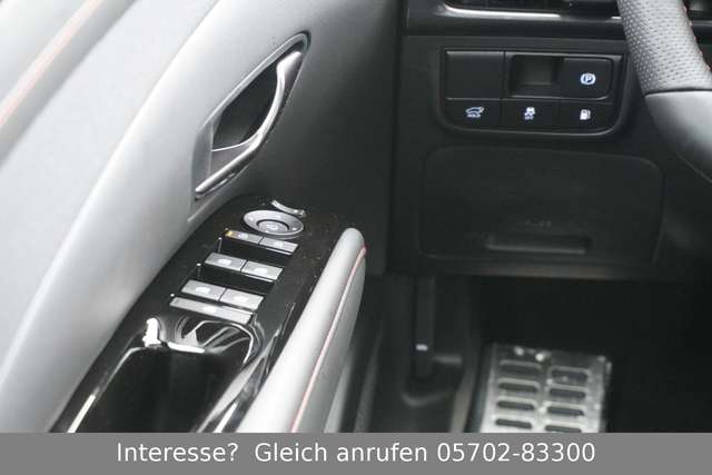 sparsamer & spritziger 1.6 Turbo-Benzinmotor mit 118kW/160PS + Elektromotor mit 72kW/98PS = 185kW/253PS Systemleidtung, 6-Gang-Automatikgetriebe mit " Shift by Wire", Euro6e-Abgasnorm mit grüner Umweltplakette, deutsches Vorführfahrzeug vom autorisierten Hyundai-Partner, 5 Jahre Hyundai-Garantie-Paket, bitte ggf. aktuellen KM-Stand anfragen, da das Fahrzeug regelmäßig bewegt wird, Lackierung: Shadow Grey-Metallic, Polster: Stoff-Lederkombination "N LINE" in Schwarz mit roten Nähten