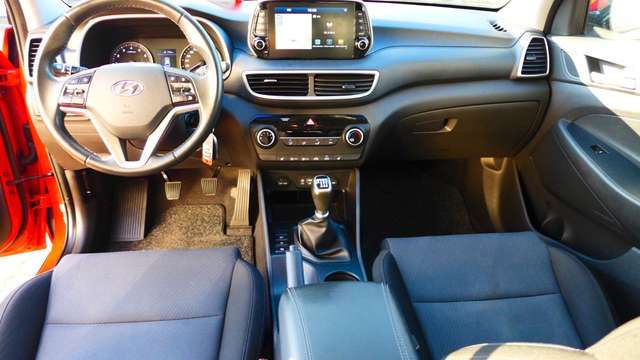 Dieser gepflegte Hyundai Tucson aus dem Jahr 2019 präsentiert sich in attraktivem Rot mit grauem Stoffinterieur. Der Frontantrieb wird von einem 1.6-Liter-Benzinmotor mit 177 PS angetrieben, der die Euro-6-Norm erfüllt und über ein manuelles Schaltgetriebe verfügt. Mit nur zwei Vorbesitzern und vollständiger Servicehistorie bietet dieser SUV ein hervorragendes Preis-Leistungs-Verhältnis. Die umfangreiche Ausstattung umfasst ein Navigationssystem, Touchscreen, Apple CarPlay und Android Auto für optimale Konnektivität. Für zusätzlichen Komfort sorgen die Klimaanlage, elektrisch beheizbare Sitze, Lichtautomatik und Regensensor. Sicherheit wird durch zahlreiche Airbags, ABS, ESP, Berganfahrhilfe und Reifendruckkontrollsystem gewährleistet.