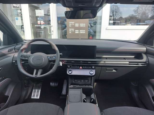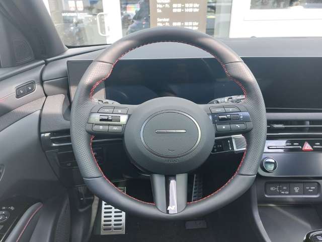 - Weiteres: Komfort und Innenausstattung: Stromversorgung: 12V-Steckdose im Gepäckraum, 12V-Steckdose vorne, Smartphone-Ablage mit kabelloser Ladefunktion, USB-C Ladeanschlüsse hinten, USB-C Ladeanschlüsse vorne, Außenausstattung: N Line: Abgasanlage mit Doppelendrohr, N Line Embleme auf den vorderen Kotflügeln, N Line Frontschürze, N Line Heckschürze mit integriertem Diffusor, N Line Kühlergrill, Radläufe und Seitenschutzleisten in Wagenfarbe lackiert, Assistenzsysteme: Geschwindigkeitsregelanlage: adaptiv (SCC), mit Limiter, mit Stopp-Funktion (ASCC), navigationsbasiert (NSCC), Smart Sense: Anfahrhinweis Vorderfahrzeug (LVDA), Aufmerksamkeitsassistent (DAW), Ausstiegswarner (SEW), Autobahnassistent 1.5 (HDA 1.5), Fernlichtassistent (HBA), Insassenalarm, sensorbasiert (ROA), Intelligente Verkehrszeichenerkennung (ISLA), Querverkehrsassistent (RCCA), Seitenwindassistent (CWC), Spurfolgeassistent (LFA), Spurhalteassistent (LKA), Totwinkelwarner (BCW), Autonomer Notbremsassistent: inkl. Abbiegefunktion (FCA-JT), inkl. Fahrradfahrererkennung (FCA-Cyc.), inkl. Fußgängererkennung (FCA-Ped.), Sicherheitsausstattung: Beleuchtung: Adaptives Bremslicht (ESS), Dachspoiler mit 3. Bremsleuchte, LED-Nebelschlussleuchte, LED-Rückleuchten (Brems- und Fahrlicht), LED-Tagfahrlicht in dunkler Optik, Lichtsensor, Matrix-LED-Scheinwerfer, Statisches Abbiegelicht, Weitere Sicherheitsausstattung: Alarmanlage, Anhängerstabilitätshilfe (TSA), Antiblockiersystem (ABS), Berganfahrhilfe (HAC), Elektrische Parkbremse (EPB), Elektronische Stabilitätskontrolle (ESC), Elektronische Wegfahrsperre, Kindersicherung an den hinteren Türen (manuell), Multikollisionsbremse (MCB), Notrufsystem (eCall), Regensensor, Reifendruck-Kontrollsystem (TPMS), Airbags: Center Airbag zwischen Fahrer und Beifahrer, Frontairbags für Fahrer und Beifahrer, Seitenairbags für Fahrer und Beifahrer, Vorhangairbags bis in den Fond reichend, Sicherheitsgurte: Drei-Punkt-Gurtsystem auf allen Sitzplätzen, Gurtstraffer und Gurtkraftbegrenzer für vordere Sitzplätze, Gurtstraffer und Gurtkraftbegrenzer hinten (äußere Sitzplätze), Gurtwarner auf allen Sitzplätzen, höhenverstellbar für vordere Sitzplätze, Parken: Einparkhilfe vorne, Rückfahrkamera, Kopfstützen: höhenverstellbar für Fahrer und Beifahrer, höhenverstellbar für hintere Sitzplätze, Innenspiegel: Innenspiegel automatisch abblendend, Infotainment: Konnektivität: Apple CarPlay™ und Android Auto™ (kabellos), Bluelink-Connect, Bluetooth®-Freisprecheinrichtung, LIVE Services (Verkehr, Wetter, POI), Over-the-Air-Updates, USB-Anschluss, Audio: Digitaler Radioempfang (DAB+), Display: 12,3-Zoll-Touchscreen, RDS-Radio, Cockpit: Digitales Cockpit mit 12,3-Zoll-Display, Head-up-Display, Navigation: Lifetime MapCare™, Navigationssystem, Felgen und Reifen: Reifen-Reparatur-Kit, KRELL Soundsystem: 7 Lautsprecher plus Subwoofer und Verstärker, KRELL Soundsystem, Zusatzausstattung: Sitz-Paket, Assistenz-Paket, Panorama-Glas-Schiebedach, Digitaler Fahrzeugschlüssel 2.0 (UWB)
