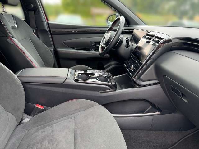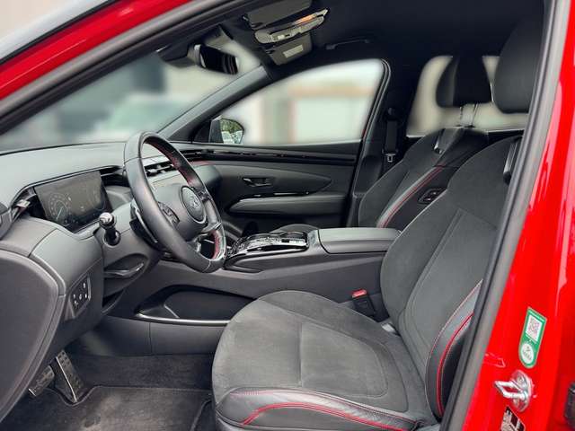 8 Lautsprecher, Ablagetasche an Vordersitzlehnen, Airbag Beifahrerseite, Airbag Beifahrerseite abschaltbar, Airbag Fahrerseite, Aktives Bremslicht (ESS), Ambiente-Beleuchtung, Anhänger-Stabilisierungs-Programm (TSA), Antriebsart: Allradantrieb, Assistenz-Paket, Audiosystem: Radio RDS, Außenspiegel elektr. anklappbar, Außenspiegel elektr. verstell- und heizbar, beide, Außenspiegel Phantom Black, Belüftung Innenraum (Multi-Air-Modus), Blinkleuchte in Außenspiegel integriert, Dachreling, Dachspoiler, Digital Cockpit (Instrumentenanzeige Digital), Doppelendrohr Auspuffanlage, Einschaltautomatik für Fahrlicht / Lichtsensor, Elektr. Bremskraftverteilung, Elektron. Stabilitätskontrolle (ESC) mit Bremsassistent, Fahrassistenz-System: aktiver Spurhalteassistent (LKAS, Lane Keep Assist System), Fahrassistenz-System: Aufmerksamkeits-Assistent, Fahrassistenz-System: Autonome Notbremsfunktion inkl. Frontkollisionswarnung (FCA), Fahrassistenz-System: Bergabfahr-Assistent, Fahrassistenz-System: Berganfahrhilfe, Fahrassistenz-System: Einparkhilfe vorn und hinten, Fahrassistenz-System: Fahrprofilauswahl (Drive Mode), Fahrassistenz-System: Fernlichtassistent, Fahrassistenz-System: Insassenalarm (Rear Occopant Alert, ROA), Fahrassistenz-System: Multikollisionsbremse (Multi Collision Brake), Fahrassistenz-System: Sicherheitssystem mit automatischem Notruf (ERA GLONASS / eCall), Fahrassistenz-System: Verkehrszeichenerkennung, erweitert (Geschwindigkeits-Regel-/Begrenzeranlage), Fensterrahmen Zierleisten schwarz glänzend, Freisprecheinrichtung Bluetooth, Frontscheibe Verbundglas, Funktions-Paket, Gegenlenkunterstützung (Vehicle Stability Management, VSM), Gepäcknetz im Koffer-/Laderaum, Gepäckraumabdeckung / Rollo, Geschwindigkeits-Begrenzeranlage (Speed-Limiter), Getränkehalter hinten, Getränkehalter vorn, Gurtstraffer, Heckklappe/-Deckel elektr. betätigt (Öffnung, sensorgesteuert), Heckleuchten LED, Heckscheibe heizbar, Hybrid 195 kW (Motor 1,6 Ltr. - 132 kW T-GDI), Induktionsladeschale für Smartphone, Innenspiegel mit Abblendautomatik, Isofix-Aufnahmen für Kindersitz, Karosserie: 5-türig, Klimaautomatik 3-Zonen, Kopf-Airbag-System, Kopfstützen hinten verstellbar, Kühlergrill dunkel verchromt, Ladekabel mit Typ 2-Stecker, Lendenwirbelstütze Sitz vorn links, verstellbar, Lenkrad heizbar, Lenkrad mit Schaltwippen, Lenksäule (Lenkrad) höhenverstellbar, Lenksäule (Lenkrad) längsverstellbar, Leseleuchte, LM-Felgen, Luftdüsen hinten, Mittelarmlehne hinten, Motorhaubenisolierung, N-Line-Paket, Navigations-Paket, Otto-Partikelfilter (OPF), Parkbremse elektrisch (EPB), Pedale Aluminium, Radioempfang digital (DAB+), Radstand 2680 mm, Reifen-Reparaturkit, Reifendruck-Kontrollsystem, Rückfahrkamera, Rücksitzlehne geteilt/klappbar, Rücksitzlehne umklappbar mit Fernentriegelung im Kofferraum, Schadstoffarm nach Abgasnorm Euro 6d, Schalt-/Wählhebel (Shift by Wire), Scheibenbeschlagerkennung / Regelung, Scheinwerfer Voll-LED, Seitenairbag vorn, Seitenairbag vorn mitte (Central Airbag), Sicherheitsgurte vorn höhenverstellbar, Sitz vorn links höhenverstellbar, Sitz vorn rechts höhenverstellbar, Sitzbezug / Polsterung: Stoff/Leder, Smart-Sense-Plus-Paket, Sonderlackierung Engine Red Uni, Sonnenblenden mit Spiegel (beleuchtet), Sonnenschutzrollo an Türscheiben hinten, Sound-System KRELL, Start-Stop-Knopf, Start/Stop-Anlage, Steckdose (12V-Anschluß) im Koffer-/Laderaum, Steckdose (12V-Anschluß) vorn, Türgriffe außen Wagenfarbe, USB-Anschluss hinten, USB-Anschluss Mittelkonsole, Verglasung Akustikglas, Verglasung getönt, Verglasung hinten abgedunkelt (Privacy Glass), Warnanlage für Sicherheitsgurte, Fahrer-/Beifahrerseite, Wireless SmartLink (Apple CarPlay)