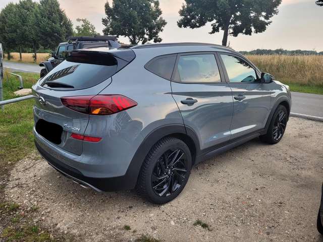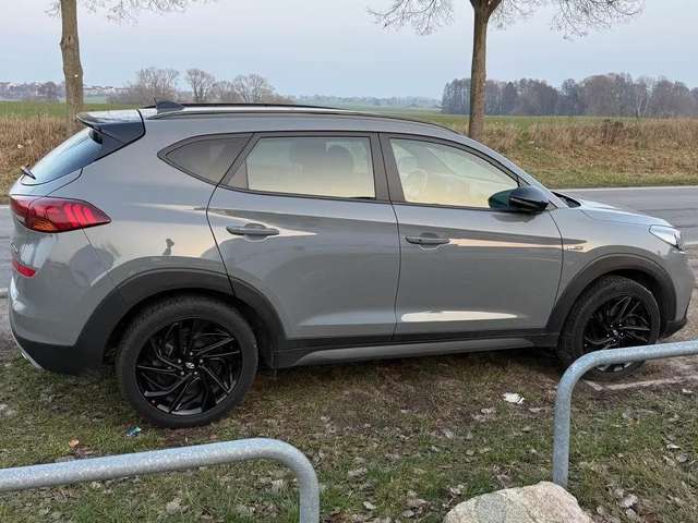 Ich möchte meinen Hyundai Tucson N-Line verkaufen. Der Tucson ist im September 2020 zugelassen worden und läuft ohne Probleme. Außen besticht er durch ein schönes Shadow Grey mit schwarzen Akzenten (Hyundai Tucson Schrift in schwarz, Hyundai Logo vorne und hinten in schwarz und die N-Line Symbole vorne links und rechts sind in matt schwarz). Weiterhin ist der Hyundai mit einer festen Anhängerkupplung und 13poligen Stecker ausgestattet, sowie mit Trittbrettern (DM Autoteile 200kg Belastbarkeit, ABE vorhanden). Ausgestattet ist der Hyundai mit Allwetter und Winterreifen (die Allwetter wollte ich gegen Sommerreifen tauschen). Ansonsten hat der Hyundai Apple CarPlay, ein schönes großes Panorama Schiebedach, getönte Scheiben hinten. Mit dazu kann ich außerdem Dachträger geben.