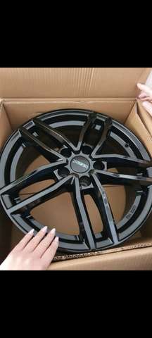 Sommerreifen auf Stahlfelgen in Schwarz.