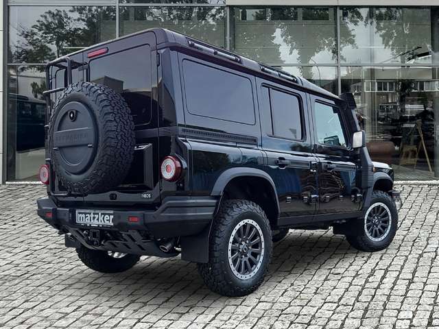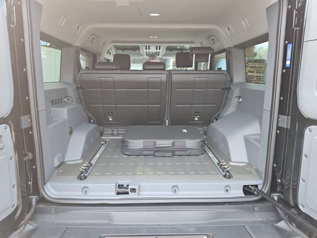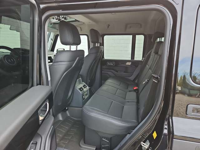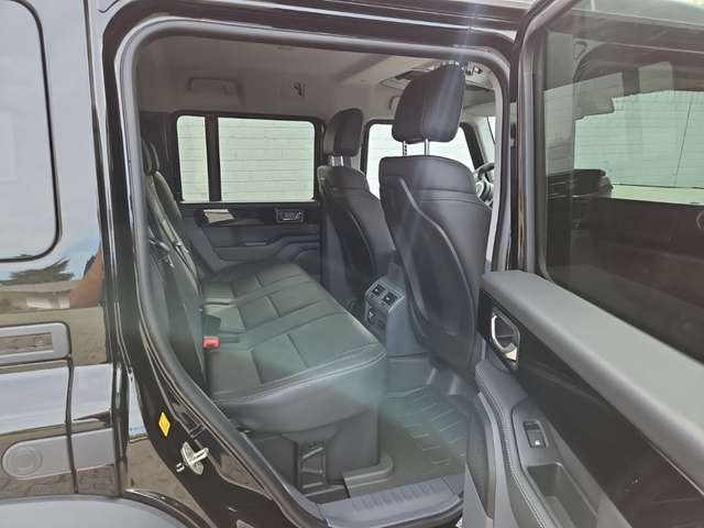 Außenfarbe Inky Black Uni-Lackierung, Farbcode außen: (FPF), Sitze Lederbezug – Schwarz, Farbcode Sitze: (ISL), Differenzialsperren vorn und hinten, Elektr. verstell-, beheizbare Außenspiegel, Feste Anhängerkupplung und Elektrik, Beheizbare Scheibenwaschanlage, Safari-Fenster, Hitzereflektierende getönte Scheiben, Utensilienleiste außen, Leiterrahmen in Kontrastfarbe Black, Zentrales Staufach abschließbar, Kompass mit Höhenmeter, Beheizbare Vordersitze, Drivers-Paket Nappa-Leder, Strapazierfähiger Gummi-Fußboden mit Ablassventilen, Zusätzliche Ladepunkte, Paket „Rough“, Power Take-Off 400W, Paket „Smooth“, Pannen-Notfallkit, Erweiterte Diebstahlwarnanlage + Wegfahrsperre, Hochlast-Zusatzschaltkasten + elektrische Vorbereitung, Heckleiter, Abschließbares Staufach hinter Reserverad, Zusatzbatterie, Ansaugschnorchel, Befestigungsschienen innen, 18-Zoll-Leichtmetallrad, BFGoodrich All-Terrain T/A KO2 Geländereifen, EBS, Antriebsart: Allradantrieb, Rückfahrkamera, Park-Distance-Control (PDC) vorne und hinten, Radstand Standard, Einstiegsleuchten und Ambiente-Beleuchtung an den Türen, Automatik - (8-Stufen), Motor 3,0 Ltr. - 210 kW Turbo