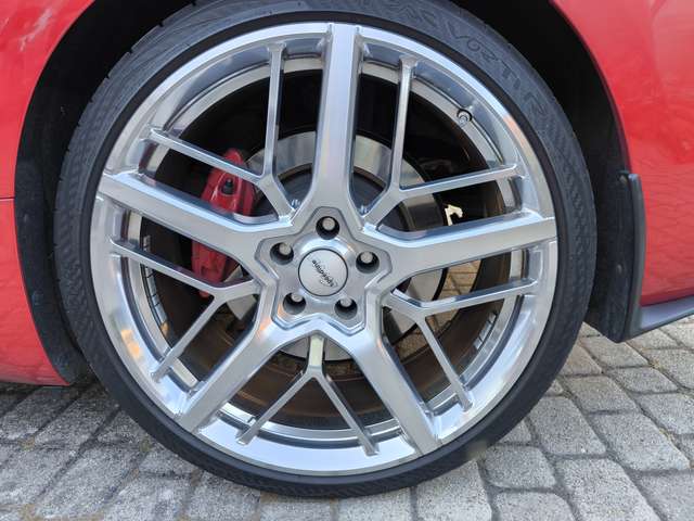Die Sommerbereifung besteht aus 21 Zoll hochglanzverdichtete LM-Felgen „Speeline“ und „Vredestein Ultrac Vorti R“-Reifen.