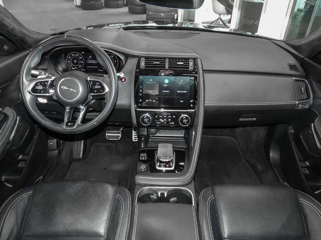 - Weiteres: Reifendruck-Kontrollsystem, Allradantrieb, Rußpartikelfilter, Scheibenwischer mit Regensensor, Reifen-Reparaturset, Heckleuchten LED, Kopf-Airbag-System (Windowbag), Getriebe Automatik - (9-Stufen), Park-Distance-Control (PDC) vorn und hinten, Sportsitze Leder, Fahrwerks-Kontroll-System (Adaptive Surface Response, AdSR), Schadstoffarm nach Abgasnorm Euro 6d, Lenkrad (Leder - R-Dynamic Emblem) mit Multifunktion, Sitze vorn elektr. verstellbar (14-Wege, mit Memory) inkl. Sitzheizung, Außenspiegel elektr. verstell-, heiz- und anklappbar, mit Abblendautomatik, Memoryfunktion und Umfeldleuchte, Geschwindigkeits-Regelanlage (Tempomat), Premium-LED-Scheinwerfer mit LED-Signatur, Leder, Frontscheibe heizbar, Panoramadach (Glas), Seitenscheiben hinten und Heckscheibe abgedunkelt, Ambiente Interieurbeleuchtung, konfigurierbar, LM-Felgen 8x20 (5-Doppelspeichen, Gloss Black / Style 5051), Mobiltelefon Schnittstelle mit kabelloser Ladefunktion und Signalverstärker, Sitzheizung vorn, Kühlergrill schwarz mit Einfassung schwarz glänzend, Audiosystem: Meridian Sound-System (400 Watt, 13 Lautsprecher, Subwoofer), Airbag Fahrer-/Beifahrerseite, Anti-Blockier-System (ABS), Nebelscheinwerfer, Seitenairbag vorn, Servolenkung, Wegfahrsperre (elektronisch), Gepäckraumabdeckung / Rollo, Rücksitzlehne geteilt/klappbar, Geschwindigkeits-Regelanlage geländeabhängig (All Surface Progress Control, ASPC), Isofix-Aufnahmen für Kindersitz im Fond, Tagfahrlicht LED, Lenkrad mit Schaltwippen/-tasten (Mattchrom), Heckleuchten LED mit dynamischem Blinklicht, Instrumentenanzeige TFT-Infodisplay HD, Metallic-Lackierung, Adaptive Geschwindigkeitsregelanlage mit Verkehrszeichenerkennung, Antriebsmomentkontrolle (Torque Vectoring), Aufmerksamkeits-Assistent, Ausstattungs-Paket: Black Pack Exterieur, Autonomer Notbrems-Assistent (AEB), Berg-Anfahr-Assistent (Hill-Holder), Bluetooth-Schnittstelle, Bremssättel Rot lackiert, Dachhimmel Premium Velours, Design- und Ausstattungslinie R-Dynamic, Dynamische Stabilitätskontrolle (DSC), Edelstahlpedale, Einparkhilfe vorn und hinten, Einschaltautomatik für Fahrlicht / Lichtsensor, Elektr. Bremskraftverteilung (EBD), Elektron. Traktionskontrolle, Fensterheber elektrisch vorn und hinten, Fernlichtassistent (Intelligent Light System), Gurtwarner, Heckaufprall-Vermeidung (Prävention Heckkollision), Heckklappenbetätigung elektrisch, Heckscheibe heizbar, Heckspoiler, InControl Apps Mobile Online Dienste, InControl Pro Services (Internetbasierende Dienste), Infotainment-System: Pivi Pro, Innenspiegel mit Abblendautomatik, JaguarVoice Sprachsteuerung, Keyless-Entry, Kindersicherung elektrisch, Klimaautomatik 2-Zonen, Ladekantenschutz (Edelstahl), Lenkrad heizbar, Leseleuchten im Fond, Lichtassistent (Coming Home, Leaving Home), Lufteinlassblende Chrom, Mittelarmlehne vorn mit Ablagefach, Navigationssystem Pro, Parkbremse elektronisch (EPB), Radioempfang digital (DAB+), Scheibenrahmen schwarz, Scheibenwaschdüsen heizbar, Smartphone Schnittstelle, Spurhalteassistent, Stop-Start-Anlage, Surround-Kamerasystem, Taschenhaken im Laderaum