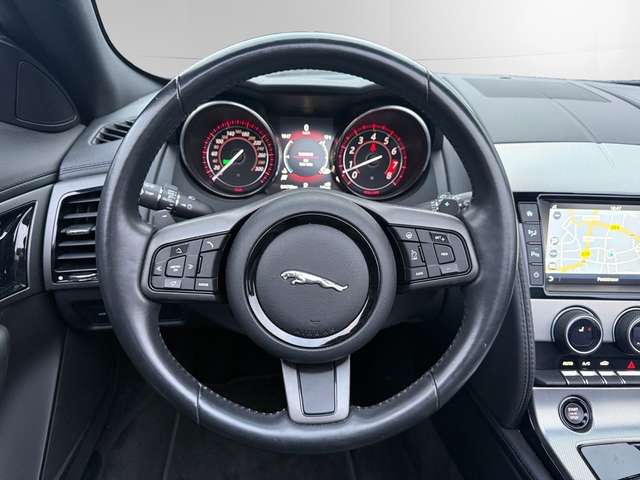 Bi-Xenon-Scheinwerfer mit Scheinwerferreinigungsanlage, Volllederausstattung in Schwarz, Sport-Auspuffanlage, Sport-Fahrwerk, Sportsitze, 2-Zonen Klimaautomatik, Sitzheizung, Regensensor, Beheizbare Frontscheibe, Beheizbares 3-Speichen Multifunktions-Sportlederlenkrad mit Schaltwippen, Innenspiegel automatisch abblendend, Notruffunktion, Automatik-Getriebe, Einparkhilfe hinten, Rückfahrkamera, Totwinkel-Assistent, Tempomat (Geschwindigkeitsregelanlage), Geschwindigkeitsbegrenzer, Elektrisch verstellbare Sitze mit Memory-Funktion, Außenspiegel elektrisch verstell-/ beheiz- und anklappbar, Zentralverriegelung mit Funkfernbedienung, Außenspiegel mit Warnsystem Totwinkel, Beleuchtete Edelstahl Einstiegsblenden mit Jaguar Schriftzug, InControl Apps Mobile Online Dienste, Klima-Paket, Komfort-Paket, Sicht-Paket, Sitz-Paket Memory 2, Smog-Sensor / Luftgütesensor, Technologie-Paket, Airbag Fahrer-/Beifahrerseite, Ambiente Interieurbeleuchtung, Antriebsart: Heckantrieb, Audio Interface (Universal-Schnittstelle für iPod / AUX / USB / MP3), Audiosystem Jaguar 180 Watt Klangsystem (CD/DVD), Außenspiegel Wagenfarbe, Bremsassistent, Bremssättel Silber lackiert, Dachhimmel Morzine in Jet, Fußgänger-Schutzsystem (Aktive Motorhaube PDBS), Getränkehalter vorn, Heckleuchten LED, Innenausstattung: Dekoreinlagen Aluminium Light Hex, Karosserie: 2-türig, Kühlergrill verchromt, Modelljahr 2016, Motor 3,0 Ltr. - 250 kW V6 24V Kompressor KAT, Multimedia-System (Touchscreen-Farbdisplay, Steuerung für Audiosystem, Klimaanlage, Bluetooth), Parkbremse elektronisch (EPB), Reifen-Reparaturset, Reifendruck-Kontrollsystem, Schadstoffarm nach Abgasnorm Euro 6, Seitenairbag vorn, Stop-Start-Anlage, Zusatzheizung (Kraftstoffbetrieben), Überrollbügel Mattchrom, usw.