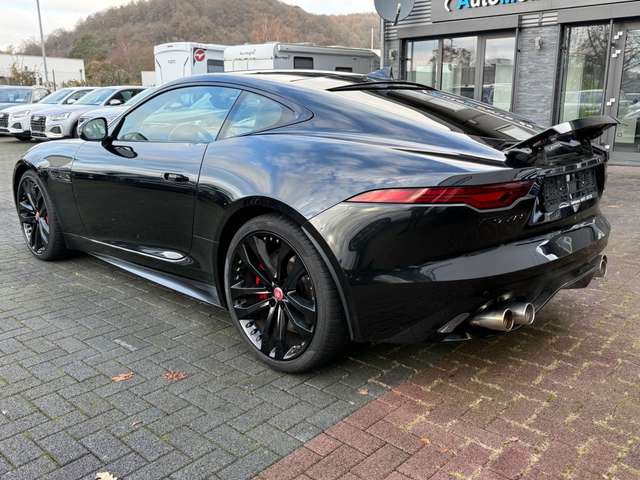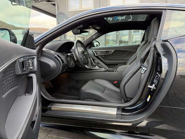 Airbag Fahrer-/Beifahrerseite, Aktive Abgasanlage (Performance) Vier Endrohre, Antriebsart: Allradantrieb, Audio Interface (Universal-Schnittstelle für iPod / AUX / USB / MP3), Audiosystem Meridian 380 Watt Premium-Klangsystem (CD/DVD), Ausstattungs-Paket: Black Pack Exterieur, Außenspiegel elektr. verstell-, heiz- und anklappbar, mit Abblendautomatik und Memoryfunktion, Bluetooth-Schnittstelle, Bremsassistent, Dachhimmel Premium-Velours in Ebony, Edelstahlpedale, Einparkhilfe vorn und hinten, Einstiegsblenden (Edelstahl) beleuchtet, mit Schriftzug Jaguar, Elektr. Bremskraftverteilung (EBD), Elektron. Sperrdifferential, Fahrassistenz-System: Adaptive Geschwindigkeitsregelanlage mit Verkehrszeichenerkennung, Fahrassistenz-System: Aufmerksamkeits-Assistent, Fahrassistenz-System: Autonomer Notbrems-Assistent (AEB), Fahrassistenz-System: Dynamic-Modus konfigurierbar, mit Dynamic-i Informations-Display, Fahrassistenz-System: Fernlichtassistent (Intelligent Light System), Fahrassistenz-System: Spurhalteassistent mit Müdigkeitserkennungs-Sensor, Frontscheibe infrarot-reflektierend, Frontscheibe wärmedämmend, Fußgänger-Schutzsystem (Aktive Motorhaube PDBS), Fußmatten, Getränkehalter vorn, Heckleuchten LED, Heckspoiler (elektrisch ausfahrbar), InControl Apps, InControl Apps Mobile Online Dienste, InControl Remote Premium (Onlinedienste / Apps), Infotainment-System: InControl Touch, Innenausstattung: Dekoreinlagen Aluminium Delta, Innenspiegel mit Abblendautomatik, Instrumentenanzeige TFT-Infodisplay HD, Karosserie: 2-türig, Kopf-Airbag-System (Windowbag), Lenkrad (Sport/Leder) mit Multifunktion, Lenksäule (Lenkrad) elektr. verstellbar mit Memory, Leseleuchten im Fond, LM-Felgen, Modellpflege (2), Motor 5,0 Ltr. - 331 kW V8 32V Kompressor KAT, Navigationssystem Pro, Otto-Partikelfilter (GPF), Parkbremse elektronisch (EPB), Performance-Sitze Leder Windsor, Radioempfang digital (DAB+), Reifen-Reparaturset, Reifendruck-Kontrollsystem, Rückfahrkamera, Schadstoffarm nach Abgasnorm Euro 6d, Schaltfunktion (Schaltwippen/-tasten) am Lenkrad, Aluminium-Optik, Scheinwerfer LED, Seitenairbag vorn, Sitze vorn elektr. verstellbar (12-fach, mit Memory), Smartphone Schnittstelle (Apple CarPlay & Android Auto), SOS-Notruffunktion für Lokalisierung Fahrzeug (InControl Protect), Sound-Taste für Aktive Abgasanlage (Sport), Sport-Fahrwerk mit adaptivem Dämpfersystem (Adaptive Dynamics), Sport-Sonnenblenden Premium-Velours mit Spiegel, Stop-Start-Anlage, Türgriffe innen schwarz, Valet-Funktion (Kofferraum / Handschuhfach)