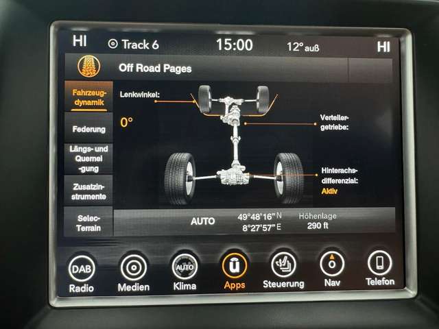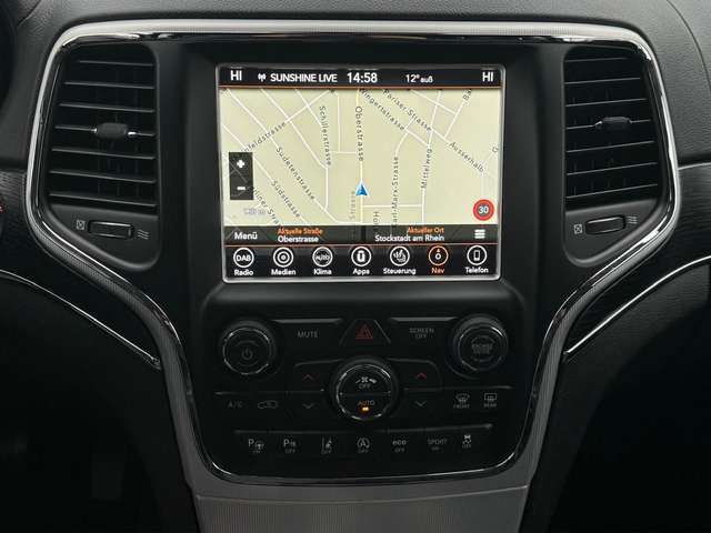 Dieser gepflegte Jeep Grand Cherokee aus 2019 überzeugt durch seine umfangreiche Ausstattung und den kraftvollen 3.0-Liter V6-Dieselmotor mit 250 PS. Der Allradantrieb in Kombination mit der Luftfederung sorgt für hervorragende Fahreigenschaften sowohl auf als auch abseits befestigter Straßen. Die schwarze Metallic-Lackierung harmoniert perfekt mit dem hochwertigen schwarzen Lederinterieur. Besonders komfortabel gestalten sich längere Fahrten dank der elektrisch verstellbaren und beheizbaren Sitze, der 2-Zonen-Klimaautomatik und dem Panorama-Glasdach. Das Fahrzeug verfügt über modernste Sicherheitssysteme wie Spurhalteassistent, Kollisionsvermeidung und adaptiven Tempomat. Die abnehmbare Anhängerkupplung ermöglicht eine gebremste Anhängelast von beeindruckenden 2.949 kg.