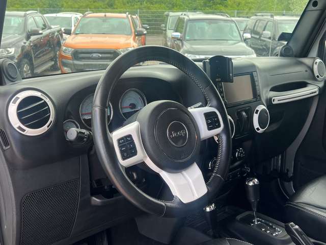 Airbag Fahrer-/Beifahrerseite, Antriebs-Schlupfregelung (ASR), Audio-Navigationssystem: UConnect Navigationssystem, Audiobedienung am Lenkrad, Automatische Fahrlichtschaltung / Lichtsensor, Außenspiegel heizbar, Bremsassistent, Dual-Top (Hardtop Wagenfarbe und Softtop), Freisprechanlage UConnect (mit Bluetooth-Schnittstelle), Fußmatten mit Reifenprofilstruktur (Mopar), Info-Center (EVIC), Innenspiegel mit Abblendautomatik, Karosserie: 2-türig, Klimaautomatik, Kotflügelverbreiterung in Wagenfarbe, Lenksäule (Lenkrad) höhenverstellbar, LM-Felgen, Motor 2,8 Ltr. - 147 kW CRD KAT, Motorhaube mit Powerdome, Polar, Radstand 2424 mm, Reserverad in Fahrbereifung, Reserverad-Abdeckung, Rücksitz geteilt / klappbar, Rücksitz klappbar, Schadstoffarm nach Abgasnorm Euro 5, Seitenairbag, Sitz vorn links höhenverstellbar, Sitzbezug / Polsterung: Vollleder, Sound-System Alpine Premium, Trittbretter seitlich, Unterfahrschutz hinten, USB-Anschluss, Volltüren (Fensterscheibe Glas)