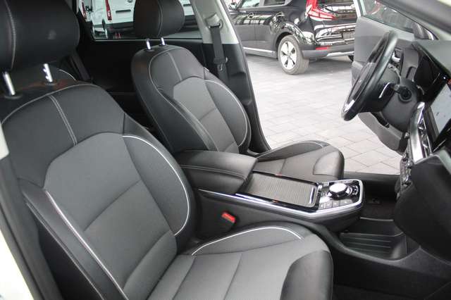 3. Bremsleuchte, Adaptive Geschwindigkeits-Regelanlage mit Stop&Go-Funktion, Airbag Beifahrerseite abschaltbar, Airbag Fahrer-/Beifahrerseite, Aktives Bremslicht (ESS), Audio-Navigationssystem KIA (10,25"), Audiobedienung am Lenkrad, Außenspiegel elektr. anklappbar, Außenspiegel elektr. verstell- und heizbar, beide, Außenspiegel elektr. verstellbar, beide, Blinkleuchte in Außenspiegel integriert, Bordcomputer, Bremsassistent, DAB-Tuner (Radioempfang digital), Dachreling, Dachspoiler, Eco-Paket, Einparkhilfe hinten, Einschaltautomatik für Fahrlicht, Elektromotor 100 kW (cont. 27 kW), Fahrassistenz-System: aktiver Spurhalteassistent (LKAS, Lane Keep Assist System), Fahrassistenz-System: Berganfahr-Assistent, Fahrassistenz-System: Frontkollisionswarnung mit Fußgängererkennung, Fahrassistenz-System: Müdigkeitserkennungs-Sensor (Driver Attention Warning, DAW), Fahrassistenz-System: Stauassistent, Fahrassistenz-System: Verkehrszeichenerkennung, Fensterheber elektrisch vorn + hinten, Freisprecheinrichtung Bluetooth, Frontscheibe Solar-Reflect, Fußmatten, Füllstandsanzeige Scheibenwaschanlage, Gegenlenkunterstützung (Vehicle Stability Management, VSM), Getriebe für Elektrofahrzeug, Getränkehalter hinten, Gurtstraffer mit Kraftbegrenzer, Heckleuchten LED, Heckscheibe heizbar, Heckscheibenwischer, HV-Batterie 39 kWh, Innenspiegel mit Abblendautomatik, Isofix-Aufnahmen für Kindersitz, Karosserie: 5-türig, Klimaautomatik, Knieairbag Fahrerseite, Kopf-Airbag-System vorn und hinten, Ladekabel mit Typ 2-Stecker (Mennekes-Stecker), Laderaumabdeckung, Lenkrad heizbar, Lenksäule (Lenkrad) höhen-/längsverstellbar, LM-Felgen, Luftausströmer im Fond mitte, Mittelarmlehne hinten, Radstand 2700 mm, Reifendruck-Kontrollsystem, Rückfahrkamera, Rücksitzlehne geteilt/klappbar, Schalt-/Wählhebelgriff Leder, Seitenairbag, Seitenscheiben Solar-Reflect, Sitz vorn links höhenverstellbar, Sitzbezug / Polsterung: Stoff/Leder, Sitzheizung vorn, Sonnenblenden mit Spiegel (beleuchtet), Soundgenerator (innen), Stoßfänger Wagenfarbe, Türgriffe außen verchromt, USB-Anschluss + AUX-IN-Anschluss, Wärmeschutzverglasung