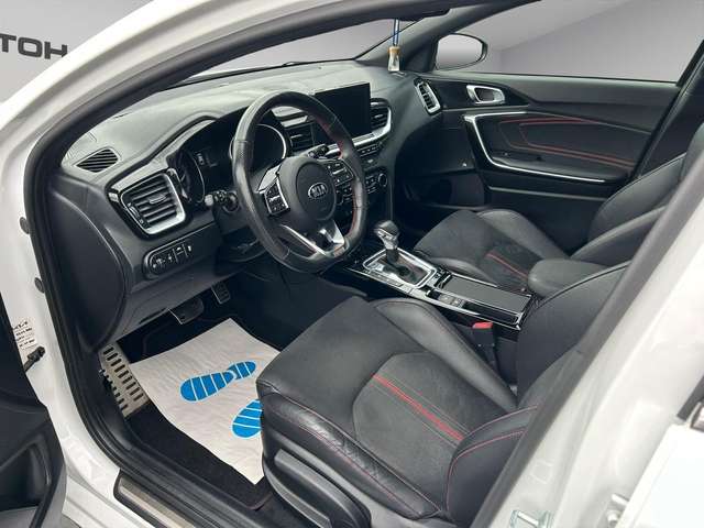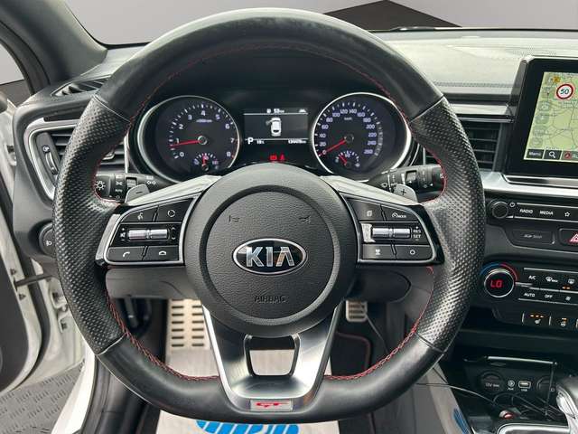 Adaptive Geschwindigkeits-Regelanlage mit Stop&Go-Funktion, Airbag Fahrer-/Beifahrerseite, Aktives Bremslicht (ESS), Antriebs-Schlupfregelung (TCS), Anzeige für Reifendruck im Display, Audio-Navigationssystem KIA (10,25"), Audiosystem: Radio mit RDS / MP3 inkl. TFT-Display, Auspuffanlage mit Klappensteuerung, Ausstattung GT, Außenspiegel elektr. anklappbar, Außenspiegel elektr. verstellbar, beide, Außenspiegel heizbar, Außenspiegel Wagenfarbe, Bi-LED-Scheinwerfer, Blinkleuchte in Außenspiegel integriert, Bordcomputer, Bremsassistent, Bremssättel Rot, Chromeinfassung Seitenfenster, DAB-Tuner (Radioempfang digital), Dachantenne im Haifischflossen-Design, Dachhimmel schwarz, Dachspoiler, Einparkhilfe hinten, Einschaltautomatik für Fahrlicht, Einstiegsleisten (Aluminium), Fahrassistenz-System: aktiver Spurhalteassistent (LKAS, Lane Keep Assist System), Fahrassistenz-System: aktiver Totwinkel-Assistent (BCA-R), Fahrassistenz-System: Ausstiegswarnung (Safe Exit Assist, SEA), Fahrassistenz-System: Autobahnassistent (Highway Driving Assist, HDA), Fahrassistenz-System: Berganfahr-Assistent, Fahrassistenz-System: Fahrprofilauswahl (Drive Mode), Fahrassistenz-System: Fernlichtassistent, Fahrassistenz-System: Frontkollisionswarnung mit Fußgängererkennung, Fahrassistenz-System: Insassenalarm, Fahrassistenz-System: Intelligentes Parksystem mit Einpark-Assistent (Parallel- und Quereinparken und Parallelausparken), Fahrassistenz-System: Müdigkeitserkennungs-Sensor (Driver Attention Warning, DAW), Fahrassistenz-System: Querverkehrs-Assistent (Rear Cross Traffic Alert, RCTA), Fahrassistenz-System: Querverkehrs-Assistent (Rear Cross Traffic Collision Warning, RCCW), Fahrassistenz-System: Spurfolgeassistent (Lane Following Assist, LFA), Fahrassistenz-System: Spurwechselassistent, Fahrassistenz-System: Verkehrszeichenerkennung, Fensterheber elektr. mit Einklemmschutz vorn, Fensterheber elektrisch vorn + hinten, Freisprecheinrichtung Bluetooth, Gepäcknetz / Tasche an Vordersitzlehne, Gepäckraumabdeckung / Rollo, Getriebe 7-Gang - Doppelkupplungsgetriebe DCT, Getränkehalter, Heckklappenöffnung elektr., Heckleuchten LED, Heckscheibe heizbar, Heckscheibenwischer, Induktionsladeschale für Smartphone, Innenspiegel mit Abblendautomatik, Instrumentenbeleuchtung Supervision, Isofix-Aufnahmen für Kindersitz, Karosserie: 5-türig, Klimaautomatik 2-Zonen, Kombiinstrument digital, Kopf-Airbag-System, Kühlergrill Klavierlack, Kühlergrill schwarz (glanzlackiert), Laderaumboden variabel, Lendenwirbelstütze Sitz vorn links und rechts, elektr. verstellbar, Lenkrad heizbar, Lenkrad mit Schaltwippen, LM-Felgen, Mittelarmlehne vorn verschiebbar, Mobile Online Dienste UVO Connect / Kia Connect, Motor 1,6 Ltr. - 150 kW TGDI KAT, Multifunktion für Lenkrad, Navigationsbasierte Adaptive Geschwindigkeitsregelanlage (Tempomat) mit Abstandsregelung (NSCC), Nebelscheinwerfer LED, Otto-Partikelfilter (OPF), Parkbremse elektrisch, Pedale Aluminium, Reifen-Reparaturset, Reifendruck-Kontrollsystem, Rückfahrkamera, Schadstoffarm nach Abgasnorm Euro 6d-TEMP, Schalt-/Wählhebelgriff Leder, Scheibenwaschdüsen heizbar, Seitenairbag, Sicherheitsgurte vorn höhenverstellbar, Sitz vorn links höhenverstellbar, Sitz vorn rechts mech. höhenverstellbar, Sitzbezug / Polsterung: Leder mit Wildleder, Sitzheizung vorn, Smartphone Schnittstelle (Apple CarPlay & Android Auto), Sonnenblenden mit Spiegel (beleuchtet), Sound-System JBL Premium, Sportsitze, Start/Stop-Anlage (ISG), Steckdose (12V-Anschluß) in Mittelkonsole, Stoßfänger Wagenfarbe, Türgriffe außen Wagenfarbe, Türgriffe innen Chrom-Optik, USB-Anschluss + AUX-IN-Anschluss, USB-Schnellladeanschluß Mittelkonsole, Verglasung hinten abgedunkelt (Privacy Glass), Warnanlage für Sicherheitsgurte hinten, Warnanlage für Sicherheitsgurte, Fahrer-/Beifahrerseite, Wärmeschutzverglasung