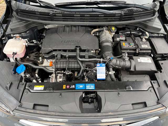 4 Lautsprecher, Airbag Beifahrerseite abschaltbar, Airbag Fahrer-/Beifahrerseite, Aktives Bremslicht (ESS), Antriebs-Schlupfregelung (TCS), Anzeigeinstrumente Supervision mit LCD Display, Audiosystem: Radio mit RDS / MP3, Außenspiegel elektr. anklappbar, Außenspiegel elektr. verstell- und heizbar, beide, Außenspiegel Wagenfarbe, Blinkleuchten LED in Außenspiegel integriert, Bordcomputer, Bremsassistent, DAB-Tuner (Radioempfang digital), Dachreling, Einparkhilfe hinten, Einschaltautomatik für Fahrlicht, Fahrassistenz-System: aktiver Spurhalteassistent (LKAS, Lane Keep Assist System), Fahrassistenz-System: Berganfahr-Assistent, Fahrassistenz-System: Fernlichtassistent, Fahrassistenz-System: Frontkollisionswarnung mit Fußgängererkennung, Fahrassistenz-System: Müdigkeitserkennungs-Sensor (Driver Attention Warning, DAW), Fahrassistenz-System: Notbrems-Assistent, Fensterheber elektrisch hinten, Fernentriegelung Tankklappe, Freisprecheinrichtung (Bluetooth) mit Sprachsteuerung, Fußmatten, Gegenlenkunterstützung (Vehicle Stability Management, VSM), Gepäckraumbeleuchtung (LED), Geschwindigkeits-Begrenzeranlage, Getriebe 7-Gang - Doppelkupplungsgetriebe DCT, Getränkehalter, Gurtstraffer (vorn), Heckscheibe heizbar, Heckscheibenwischer, Innenraumbeleuchtung LED, Isofix-Aufnahmen für Kindersitz, Karosserie: 5-türig, Klimaautomatik, Kopf-Airbag-System, Kurvenbremskontrolle (Corner-Brake-Control, CBC), Kühlergrill mit Chromrahmen, Kühlergrill verchromt, Laderaumabdeckung, Laderaumboden herausnehmbar, Lenkrad heizbar, Lenksäule (Lenkrad) höhen-/längsverstellbar, LM-Felgen, Modellpflege, Motor 1,0 Ltr. - 74 kW TGDI, Multifunktion für Lenkrad, Otto-Partikelfilter (OPF), Radstand 2580 mm, Reifen-Reparaturset, Reifendruck-Kontrollsystem, Rücksitzlehne geteilt/klappbar, Schadstoffarm nach Abgasnorm Euro 6d, Schalt-/Wählhebelgriff Leder, Schaltpunktanzeige, Seitenairbag, Sicherheitsgurte vorn höhenverstellbar, Sitz vorn links höhenverstellbar, Sitz vorn rechts mech. höhenverstellbar, Sitzbezug / Polsterung: Stoff, Sitzheizung vorn, Sonnenblenden mit Spiegel (beleuchtet), Steckdose (12V-Anschluß) in Mittelkonsole, Stoßfänger Wagenfarbe, Touchscreen-Farbdisplay (8,0 Zoll), Türgriffe außen Wagenfarbe, Türgriffe innen Chrom-Optik, Unterfahrschutz (Silber), USB-Anschluss + AUX-IN-Anschluss, USB-Anschluss Mittelkonsole, Verglasung hinten abgedunkelt (Privacy Glass), Warnanlage für Sicherheitsgurte hinten, Warnanlage für Sicherheitsgurte, Fahrer-/Beifahrerseite, Wärmeschutzverglasung