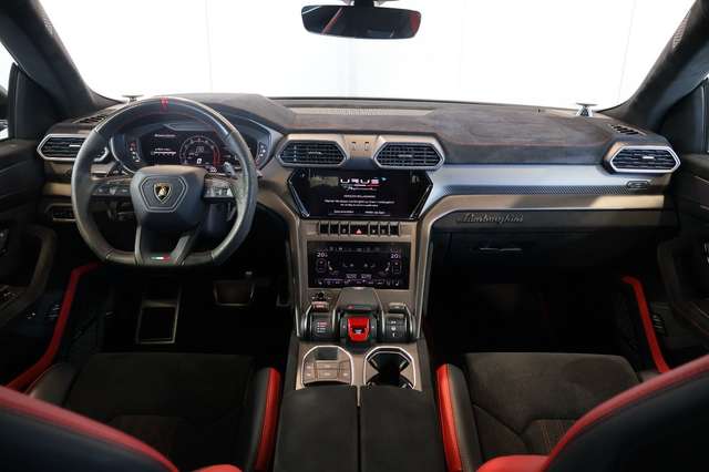 Lamborghini Urus Performante – Maßgeschneiderte Perfektion in Nero Granatus Erleben Sie pure Performance und atemberaubendes Design – dieser Lamborghini Urus Performante vereint kompromisslose Sportlichkeit mit exklusiver Individualisierung durch das Ad Personam Programm. Die edle Außenfarbe Nero Granatus in Kombination mit dem Full Exterior Carbon Fiber Package (Matt), Carbon-Motorhauben-Lufteinlässen und den 23" Pelope Felgen in Shiny Black mit Titanradschrauben setzt ein klares Statement: Kraft trifft auf Eleganz. Rote Bremssättel unterstreichen den dynamischen Charakter. Interieur – Rennsportfeeling trifft Luxus