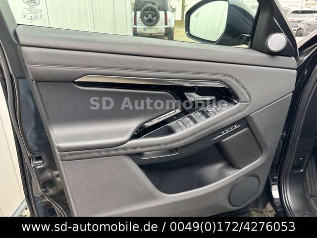 Airbag Fahrer-/Beifahrerseite, All-Terrain-Bereifung, Anhänger-Stabilisierungs-Programm, Audiosystem: Sound-System (180 Watt, 6 Lautsprecher), Außenspiegel elektr. verstell- und heizbar, Außenspiegel elektr. verstell-, heiz- und anklappbar, mit Abblendautomatik und Umfeldleuchte, Außenspiegel mit Abblendautomatik, Außenspiegel mit Memoryfunktion, Außenspiegel mit Umfeldleuchte, Außenspiegel mit Warnsystem Totwinkel bei Türöffnung, Blinkleuchten mit Lauflicht vorn, Bluetooth-Schnittstelle, Bremsassistent, Bremsscheiben vorn 349 mm, Dach Wagenfarbe, Dachhimmel Morzine in Ebony, Einparkhilfe vorn und hinten, Einstiegsleisten (Chrom), Elektr. Bremskraftverteilung, Fahrassistenz-System: Antriebsmomentkontrolle (Torque Vectoring), Fahrassistenz-System: Aufmerksamkeits-Assistent, Fahrassistenz-System: Bergabfahrkontrolle (HDC), Fahrassistenz-System: Berganfahr-Assistent, Fahrassistenz-System: Einparkhilfe 360° (virtuelle Überwachung), Fahrassistenz-System: Fernlichtregulierung (Light Assist), Fahrassistenz-System: Kollisionswarnsystem, Fahrassistenz-System: Notbrems-Assistent, Fahrassistenz-System: Park-Assistent, Fahrassistenz-System: Spurhalteassistent (Lane Departure Warning), Fahrassistenz-System: Verkehrszeichenerkennung (Traffic Sign Recognition), Fahrwerk mit Schraubenfederung, Getriebe Automatik - (9-Stufen), Heckklappe/-Deckel elektr. betätigt (öffnen + schliessen), InControl Apps, InControl Remote Premium (Onlinedienste / Apps), InControl Touch Pro Infotainment-System (Farbdisplay), Infotainment-System: Pivi Pro, Innenausstattung: Dekoreinlagen Aluminium dunkel, Innenspiegel mit Abblendautomatik, Instrumentenanzeige TFT-Farbdisplay (12 Zoll), Karosserie: 5-türig, Kopf-Airbag-System hinten, Kopf-Airbag-System vorn, Kurvenbremskontrolle (Corner-Brake-Control, CBC), Ladekabel mit Schukostecker, Lenkrad mit Schaltwippen/-tasten (Mattchrom), Mild-Hybrid 183 kW (Motor 2,0 Ltr. - 183 kW Si4 Turbo KAT), Motor-Schleppmoment-Regulator (MSR / EDC), Navigationssystem Pro, Parkbremse elektrisch, Pedale Edelstahl-Design, Personalisierungssystem (Smart Settings), Radstand 2681 mm, Reifen-Reparaturkit, Reserverad als Notrad, Rückfahrkamera, Schadstoffarm nach Abgasnorm Euro 6d, Schadstoffarm nach Abgasnorm Euro 6d-TEMP, Scheinwerfer LED, Sitzbezug / Polsterung: Leder genarbt (Ebony), Smartphone Schnittstelle (Apple CarPlay & Android Auto), Start/Stop-Anlage, Surround-Kamerasystem, Terrain-Response-System 2, Traktionskontrolle, Wankneigungskontrolle (Roll Stability Control, RSC)
