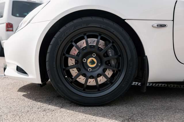 - 25 mm Bremsscheiben mit Alu-Topf und mit 4-Kolben Sättel vorne und 2-Kolben hinten)· Aluminium Monroso Klappen-ÖlwanneVerschiedene Rad- Reifenkombinationen eingetragen, Serien Y- Schmiedefelgen mit 195/50 R16 auf VA und HA 225/45R17 mit Yokohama Fleva V701 (dieser Reifen ist ein sportlicher Straßenreifen mit hervorragenden Nässeigenschaften, ruhigem Abrollgeräusch und gutem Handling bei gleichzeitig (also für Lotus-Verhältnisse) hoher Laufleistung) sowie 205/45 R16 auf VA in Verb. mit 245/40 R17 auf HA (Yokohama AD08RS) auf sehr leichten Schmiedefelgen der Exige Cup 260der Fa. Team Dynamics (ProRace 1.4G) in matt schwarz in den Größen 7x16 & 8x17.Bremsenkühlung / „Belüftungsschaufeln“ VorderachseDistanzscheiben für die HebebühneInnenausstattung:· Erweiterte Lederausstattung mit Armaturenbrett, Mittelkonsole, Schaltsack, Handbremshebelabdeckung sowie Schwellerabdeckung· CD-Radio mit USB· Klima TÜV bei verkauf neu.