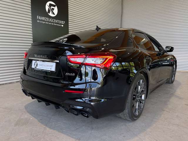 8 Lautsprecher, Airbag Beifahrerseite abschaltbar, Airbag Fahrer-/Beifahrerseite und Seitenairbag vorn, Antriebsart: Heckantrieb, Auspuffanlage (Doppelauspuffblende) mit Endrohre verchromt, Außenspiegel elektr. verstell-, heiz- und anklappbar, Außentemperaturanzeige, Bordcomputer mit Farbdisplay, Bremsanlage: Brembo, Chrome-Line Exterieur, Dachhimmel Stoff, Differentialsperre (Hinterachse), Einparkhilfe vorn und hinten, Einstiegsleisten (Edelstahl), Elektr. Bremskraftverteilung (EBD), Elektron. Traktionskontrolle, Exterieurumfänge Glossy black, Fahrassistenz-System: Berganfahrhilfe, Fensterheber elektrisch vorn + hinten, Fußmatten Velours, Gepäcknetz im Koffer-/Laderaum, Getriebe Automatik - mit manueller Schaltmöglichkeit (8-Stufen), Handschuhfach mit Kühlfunktion, Heckleuchten LED, Heckscheibe heizbar, Innenausstattung: Interieureinlagen Dark Mirror, Innenausstattung: Leder - erweiterter Umfang, Innenspiegel mit Abblendautomatik, Karosserie: 4-türig, Keyless-Entry, Keyless-Entry & Go, Klimaautomatik 2-Zonen, Knieairbag Fahrerseite, Kofferraumdeckel / Heckklappe elektrisch betätigt (öffnen + schliessen), Kopf-Airbag-System (Windowbag), Kopfstützen mit Geprägter Dreizack, Lenkrad (Sport/Leder - 3-Speichen) mit Multifunktion, Lenksäule (Lenkrad) elektr. verstellbar (vertikal / axial), Leseleuchten vorn und hinten, LM-Felgen, Mittelarmlehne hinten mit Getränkehalter, Mittelarmlehne vorn mit klimatisiertem Staufach und 12V-Anschluß, Motor 3,0 Ltr., Multimedia-System Maserati Touch Control (inkl. Navigation, Apple CarPlay, Android Auto), Navigationssystem, Parkbremse elektrisch (EPB), Pedalerie Edelstahl, Reifen-Reparaturset, Reifendruck-Kontrollsystem, Rücksitzlehne geteilt/klappbar (60:40), Schadstoffarm nach Abgasnorm Euro 6, Schalt-/Wählhebelgriff Leder, Seitenschürzen, Smartphone Schnittstelle (Apple CarPlay & Android Auto), Sonnenblenden mit Spiegel (beleuchtet), Sportsitze vorn elektr. verstellbar (links mit Memory), Start-Stop-Knopf, Start/Stop-Anlage, Steckdose (12V-Anschluß) im Koffer-/Laderaum, Tagfahrlicht LED, Telematik-System Maserati Call, Uni-Lackierung, USB-Anschluss + AUX-IN-Anschluss, Wärmeschutzverglasung (Dämmglas)