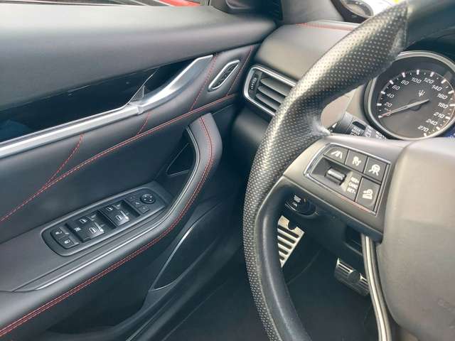 Airbag Beifahrerseite abschaltbar, Airbag Fahrer-/Beifahrerseite und Seitenairbag vorn, Anhänger-Stabilisierungs-Programm, Antriebsart: Allradantrieb, Außenausstattung: Shadow-Line, Außenspiegel elektr. verstell-, heiz- und anklappbar, Außentemperaturanzeige, Bordcomputer mit Farbdisplay, Bremsanlage: Brembo, Bremsassistent (HBA), Bremssättel Rot lackiert, DAB-Tuner (Radioempfang digital), Differentialsperre (Hinterachse), Doppelverglasung, Einparkhilfe vorn und hinten, Einstiegsleisten (Edelstahl), Elektr. Bremskraftverteilung (EBD), Elektron. Traktionskontrolle, Fahrassistenz-System: Antriebsmomentkontrolle (Torque Vectoring), Fahrassistenz-System: Bergabfahr-Assistent, Fahrassistenz-System: Berganfahrhilfe, Fahrassistenz-System: Notbrems-Assistent (BAS), Fahrmodusschalter, Fahrwerk elektronisch geregelt (Skyhook), Fensterheber elektrisch vorn + hinten, Frontscheibe Verbundglas, Fußmatten Velours, Getriebe Automatik - mit manueller Schaltmöglichkeit (8-Stufen), Handschuhfach mit Kühlfunktion, Heckscheibe heizbar, Heckspoiler Wagenfarbe, Innenausstattung: Interieureinlagen Shiny Black, Innenausstattung: Leder, Innenspiegel mit Abblendautomatik, Isofix-Aufnahmen für Kindersitz an Rücksitz, Karosserie: 5-türig, Keyless-Entry & Go, Klimaautomatik 2-Zonen, Kofferraumdeckel / Heckklappe elektrisch betätigt (öffnen + schliessen), Kopf-Airbag-System (Windowbag), Ladekantenschutz (verchromt), Lenkrad (Sport/Leder - 3-Speichen) mit Multifunktion, Lederfarbe schwarz, Lenksäule (Lenkrad) elektr. verstellbar (vertikal / axial), Leseleuchten vorn und hinten, LM-Felgen, Luftfederung elektronisch geregelt, Matrix-LED-Scheinwerfer, Mittelarmlehne hinten mit Getränkehalter, Mittelarmlehne vorn mit klimatisiertem Staufach und 12V-Anschluß, Motor 3,0 Ltr. - 202 kW V6 Diesel KAT, Motor-Schleppmoment-Regulator (MSR), Multimedia-System Maserati Touch Control (inkl. 8,4 Zoll Touchscreen-Farbdisplay, DVD-Player, SD-Karten-Schnittstelle), Navigationssystem, Nebelscheinwerfer LED, Parkbremse elektrisch (EPB), Pedalerie Edelstahl, Radstand 3004 mm, Reifendruck-Kontrollsystem, Rußpartikelfilter, Rücksitzlehne geteilt/klappbar (60:40), Schadstoffarm nach Abgasnorm Euro 6, Soft-Close-Automatik für Türen, Sonnenblenden mit Spiegel (beleuchtet), Sportsitze vorn elektr. verstellbar (links mit Memory), Start-Stop-Knopf, Start/Stop-Anlage, Steckdose (12V-Anschluß) im Fond, Steckdose (12V-Anschluß) im Koffer-/Laderaum, Stoßfänger / Radkästen / Seitenschürzen Wagenfarbe, Tagfahrlicht LED, Uni-Lackierung, Unterfahrschutz (schwarz), Wärmeschutzverglasung (Dämmglas), Zuheizer