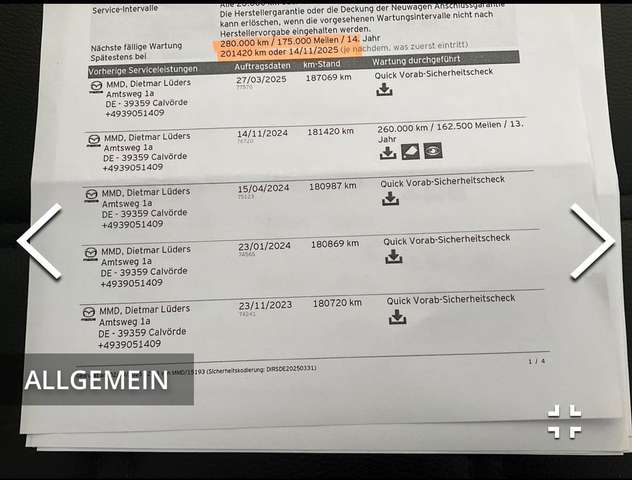 -alle Inspektionen und Wartungen wurden immer durchgeführt. Das Scheckheft wurde lückenlos bei Mazda Vertragswerkstatt geführt bis 03.2025.