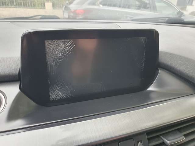 -Schild "Mazda" an Kofferaumkante gebrochen