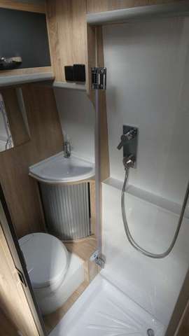 Fahrzeug, Acryl-Klarglastür Bad/Dusche, Aufbaubatterie 105AH,