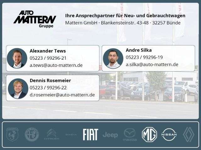 Die angegebenen Verbrauchsangaben beziehen sich auf WLTP-Werte. Zwischenverkauf und Irrtümer für dieses Angebot sind ausdrücklich vorbehalten. Ausschlaggebend sind einzig und allein die Vereinbarungen in der Auftragsbestätigung oder im Kaufvertrag. Den genauen Ausstattungsumfang, die genauen Kilometer und den Verkaufspreis erhalten Sie von unserem Verkaufspersonal. Bitte kontaktieren Sie uns.