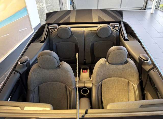 * Verdeck MINI Yours Schwarze Grundfarbe mit eingewebtem Muster ""Union Jack"" in titangrau auf der Dachfläche Vollelektrisches Stoffverdeck mit integriertem Stofffaltdach/Schiebedach mit stufenloser Zwischenstellung