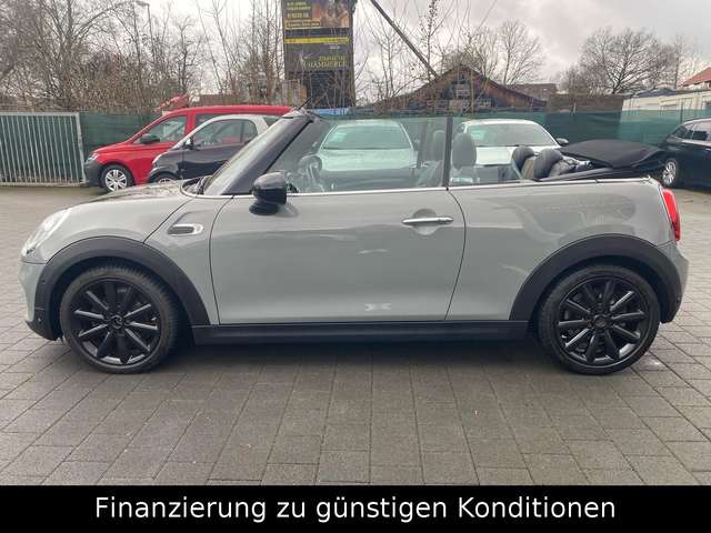 Erleben Sie Fahrvergnügen unter freiem Himmel mit diesem gepflegten MINI Cooper Cabrio aus 2019. Der 136 PS starke 3-Zylinder-Motor mit 1499 ccm Hubraum bietet sportliche Fahrleistungen bei gleichzeitiger Effizienz (Euro 6d-TEMP). Das Fahrzeug präsentiert sich in elegantem Grau-Metallic mit schwarzer Lederausstattung und wurde von nur einem Vorbesitzer gefahren. Die Automatik-Schaltung sorgt für komfortables Fahren, während das Sportpaket mit Sportsitzen zusätzlichen Fahrspaß verspricht.