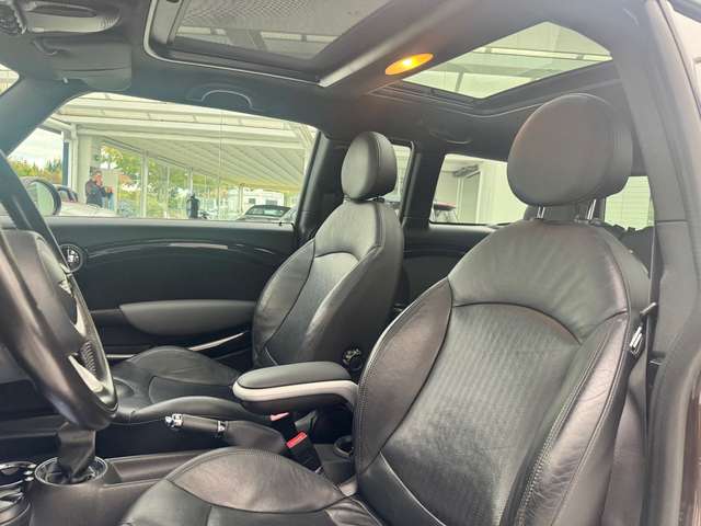 Airbag Beifahrerseite abschaltbar, Audiosystem MINI Boost CD (Radio/CD-Player MP3-fähig), Ausstattungs-Paket: Chili, Ausstattungs-Paket: Jalapeno, Außenspiegel-Paket, Dach schwarz lackiert, Dachhimmel Anthrazit, Freisprecheinrichtung Bluetooth mit USB-/Audio-Schnittstelle, Gepäckraum-Abtrennung (Netz), Innenausstattung: Dekor (erweiterter Umfang), Innenspiegel mit Abblendautomatik, LM-Felgen 7x17 (Crown Spoke 104), Metallic-Lackierung, Multifunktion für Lenkrad, Park-Distance-Control (PDC), Raucher-Paket, Reifensystem Run-Flat (mit Notlaufeigenschaften), Scheibenwaschdüsen und Außenspiegel beheizt, Schiebe-/Hebedach elektrisch (Glas), Sitzausstattung: 5-Sitzer, Sitzheizung vorn, Sonnenschutzverglasung, Sportsitze vorn