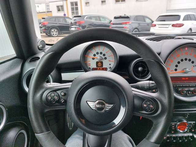 Ablage-Paket, Airbag Beifahrerseite abschaltbar, Audiosystem MINI Boost CD (Radio/CD-Player MP3-fähig), Bordcomputer, Freisprecheinrichtung Bluetooth mit USB-/Audio-Schnittstelle, Fußmatten Velours, HiFi-Lautsprechersystem Harman-Kardon, Innenausstattung: Color-Line, Innenausstattung: Interieur-Oberfläche Piano Black, Klimaautomatik, Licht-Paket, Metallic-Lackierung, Multifunktion für Lenkrad, Scheibenwaschdüsen und Außenspiegel beheizt, Sitz vorn rechts höhenverstellbar, Sitzbezug / Polsterung: Stoff/Leder-Kombination Ray, Sitzheizung vorn, Sonnenschutzverglasung