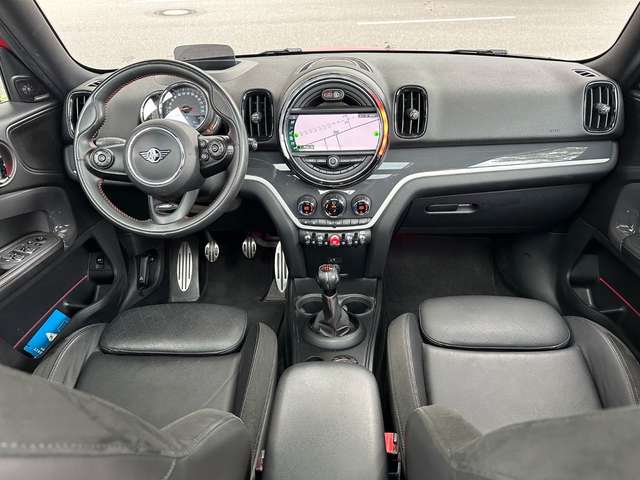 Ausstattungs-Paket: John Cooper Works Aerodynamik Kit, Ausstattungs-Paket: John Cooper Works Trim, Außen-/Innenspiegel mit Abblendautomatik, Business-Paket, Connectivity-Paket, Dachhimmel Anthrazit, Dachreling schwarz, Dekor-/Zierstreifen auf Motorhaube, Fahrassistenz-System: Park-Assistent, Gepäckraum-Abtrennung (Netz), Head-up-Display, Heckflügelspoiler, Kraftstofftank: vergrößert, Mittelarmlehne hinten, Panoramadach (Glas), Park-Distance-Control (PDC) vorn und hinten, Reifensystem Run-Flat (mit Notlaufeigenschaften), Rückfahrkamera, Sitzbezug / Polsterung: Leder Cross Punch, Sitze hinten längsverstellbar, Uni-Lackierung