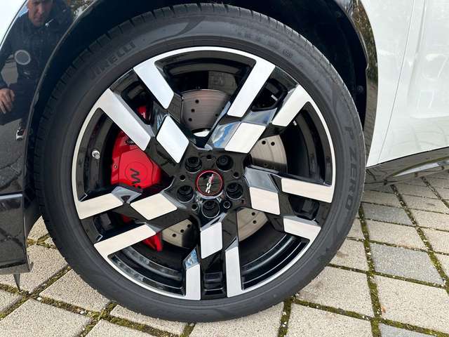 Airbag Beifahrerseite abschaltbar, Airbag Fahrer-/Beifahrerseite, Ambiente-Beleuchtung, Ausstiegsleuchten in Türverkleidung unten, Außenspiegel elektr. verstell- und heizbar, Dachhimmel Anthrazit, Dachreling schwarz, Diebstahlsicherung für Räder (Felgenschlösser), Dynamische Dämpfer Control (Dynamic Damping Control), Erste Hilfe-Kasten / Verbandkasten, Fahrassistenz-System: Post-Crash-System (PC-iBrake), Gepäckraumbeleuchtung, Getränkehalter, Head-up-Display, Heckleuchten LED, Heckscheibe heizbar, HiFi-Lautsprechersystem Harman-Kardon, Induktionsladeschale für Smartphone (Wireless Charging), Innen- und Außenspiegel-Paket, Innenraumerlebnis MINI Experience Modes, Innenspiegel mit Abblendautomatik, Isofix-Aufnahmen für Kindersitz an Beifahrersitz, Isofix-Aufnahmen für Kindersitz an Rücksitz, John Cooper Works Trim, Karosserie: 5-türig, Klimaautomatik 2-Zonen mit autom. Umluft-Control, Kopf-Airbag-System hinten, Kopf-Airbag-System vorn, Kraftstofftank: vergrößert, Kurvenbremskontrolle (Corner-Brake-Control, CBC), Leseleuchten hinten, Leseleuchten vorn, Metallic-Lackierung Melting Silver 3, Motor 2,0 Ltr. - 221 kW 16V TwinPower Turbo KAT (B48), Multimedia-Schnittstelle 2 x USB (Typ C) Mittelkonsole vorn und 2 x USB-Ladeanschluß (Typ C) Mittelkonsole hinten, Navigationssystem, Otto-Partikelfilter (OPF), Park-Distance-Control (PDC) vorn und hinten, Parkbremse elektrisch, Personalisierungssystem (Personal eSIM), Radioempfang digital (DAB+), Radstand Standard, Reifen-Reparaturset (Mobility-Pack), Schadstoffarm nach Abgasnorm Euro 6e, Scheibenwaschdüsen heizbar, Seitenairbag hinten, Seitenairbag vorn, Seitenairbag vorn mitte (Interaktionsairbag), Service-System: Gesetzlicher Notruf inkl. TeleServices, Sitzbezug / Polsterung: Strick/Kunstleder Vescin JCW Schwarz, Sitze hinten längsverstellbar, Sitzheizung vorn, Sportsitze vorn John Cooper Works, Steckdosen (12V-Anschluß) in Mittelkonsole und Koffer-/Laderaum, Warndreieck, Zentralinstrument OLED