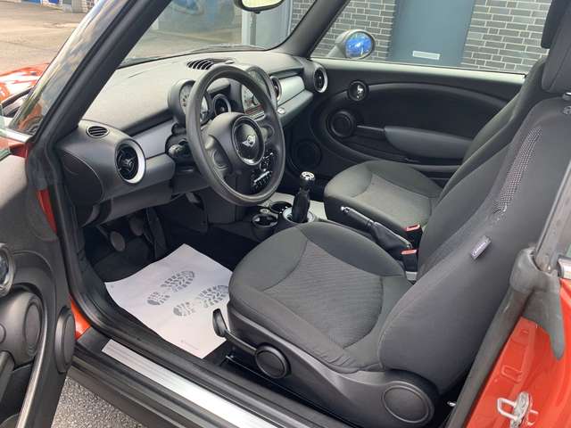 Airbag Fahrer-/Beifahrerseite, Audiosystem MINI CD (Radio/CD-Player), Auspuffanlage (1-Rohr-Anlage) mit Blende, AUX-IN-Anschluss (AUX-IN), Außenspiegel elektr. verstellbar, Außenspiegel schwarz, Außentemperaturanzeige, Bremsassistent, Drehzahlmesser, Elektron. Bremskraftverteiler, Getränkehalter vorn und hinten, Innenausstattung: Interieur-Oberfläche White Silver, Isofix-Aufnahmen für Kindersitz an Rücksitz, Karosserie: 2-türig, Lenksäule (Lenkrad) mechan. verstellbar, Modellpflege, Motor 1,6 Ltr. - 72 kW 16V, Nebelschlussleuchte integriert, Park-Distance-Control (PDC), Reifen-Reparaturset (Mobility-Pack), Rücksitzlehne geteilt/klappbar, Schadstoffarm nach Abgasnorm Euro 5, Seitenairbag vorn, Sitz vorn links mechanisch höhenverstellbar, Sitzbezug / Polsterung: Stoff Cosmos, Stahlfelgen 5,5x15 (Styling 12), Uni-Lackierung, Verdeck schwarz, Verdeckbetätigung vollautomatisch, Verglasung grün getönt, Wärmeschutzverglasung getönt, Zweiter Schlüssel mit Fernbedienung