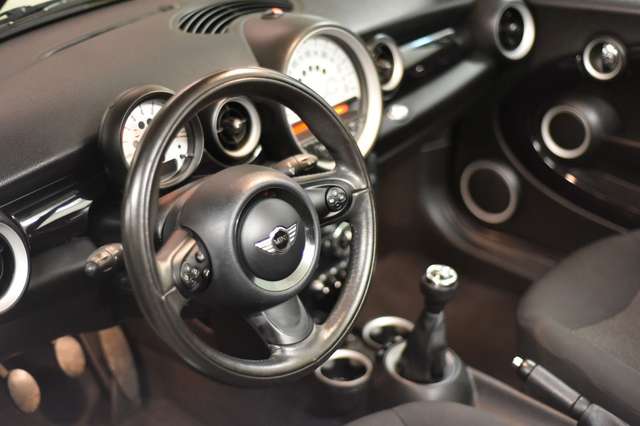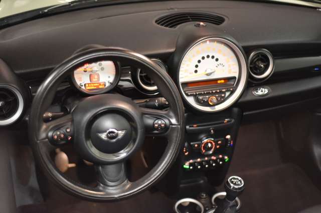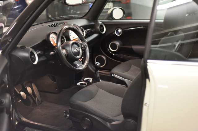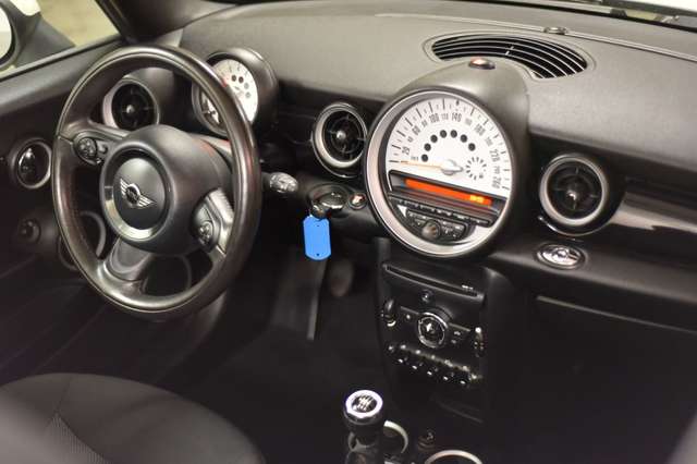 Airbag Fahrer-/Beifahrerseite, Audiosystem MINI CD (Radio/CD-Player), Auspuffanlage (1-Rohr-Anlage) mit Blende, AUX-IN-Anschluss (AUX-IN), Außenspiegel elektr. verstellbar, Außenspiegel schwarz, Außentemperaturanzeige, Bremsassistent, Drehzahlmesser, Elektron. Bremskraftverteiler, Getränkehalter vorn und hinten, Isofix-Aufnahmen für Kindersitz an Rücksitz, Karosserie: 2-türig, Lenksäule (Lenkrad) mechan. verstellbar, Modellpflege, Motor 1,6 Ltr. - 72 kW 16V, Nebelschlussleuchte integriert, Park-Distance-Control (PDC), Reifen-Reparaturset (Mobility-Pack), Rücksitzlehne geteilt/klappbar, Schadstoffarm nach Abgasnorm Euro 5, Seitenairbag vorn, Sitz vorn links mechanisch höhenverstellbar, Sitzbezug / Polsterung: Stoff Cosmos, Stahlfelgen 5,5x15 (Styling 12), Uni-Lackierung, Verdeck schwarz, Verdeckbetätigung vollautomatisch, Verglasung grün getönt, Wärmeschutzverglasung getönt, Zweiter Schlüssel mit Fernbedienung