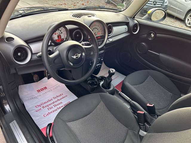 Airbag Fahrer-/Beifahrerseite, Audiosystem MINI CD (Radio/CD-Player), Auspuffanlage (1-Rohr-Anlage) mit Blende, Automatische Stabilitäts-Control und Traktion (ASC + T), AUX-IN-Anschluss (AUX-IN), Außenspiegel elektr. verstellbar, Außentemperaturanzeige, Bremsassistent, Bremsenergierückgewinnung, Dach Wagenfarbe, Dachspoiler, Drehzahlmesser, Elektron. Bremskraftverteiler, Getränkehalter vorn und hinten, Heckscheibenwischer, Innenausstattung: Interieur-Oberfläche White Silver, Isofix-Aufnahmen für Kindersitz an Rücksitz, Karosserie: 3-türig, Kopf-Airbag-System hinten, Kopf-Airbag-System vorn, Lenksäule (Lenkrad) mechan. verstellbar, Modellpflege, Motor 1,6 Ltr. - 55 kW 16V, Nebelschlussleuchte integriert, Nichtraucher-Paket, Reifen-Reparaturset (Mobility-Pack), Rücksitzlehne geteilt/klappbar, Schadstoffarm nach Abgasnorm Euro 6, Seitenairbag vorn, Sitz vorn links mechanisch höhenverstellbar, Sitzausstattung: 4-Sitzer, Sitzbezug / Polsterung: Stoff Cosmos, Sitze vorn höhenverstellbar, Wärmeschutzverglasung getönt, Zweiter Schlüssel mit Fernbedienung