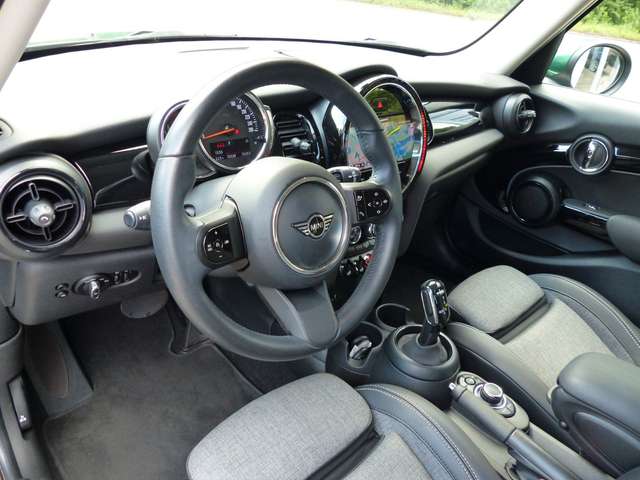 Ablage-Paket, Airbag Fahrer-/Beifahrerseite, Airbag Beifahrerseite abschaltbar, Anti-Blockier-System (ABS), Apple CarPlay Information (Vorbereitung), Armauflage vorn, Audio-Navigationsystem, Außentemperaturanzeige, Blinkleuchten weiß, Dynamische Stabilitäts-Control (DSC), Fahrassistenz-Paket "Classic Plus", Fensterheber elektrisch, Freisprecheinrichtung Bluetooth mit USB-/Audio-Schnittstelle, Geschwindigkeits-Regelanlage (Tempomat) mit Bremsfunktion, Klimaanlage, Kombiinstrument digital, Kopf-Airbag System vorn + hinten, MINI Connected (Schnittstelle), Leichtmetall-Felgen Park-Assistent, Park-Distance-Control (PDC) vorn + hinten, Sitzbezug/Polsterung: Stoff-/Leatherette (Kunstleder) Carbon Black, Real Time Traffic Information (RTTI), Scheibenwaschdüsen und Außenspiegel beheizt, Seitenairbags, Servolenkung, Sitzheizung, Start-Stop-System, Tagfahrlicht, Zentralverriegelung mit Fernbedienung.