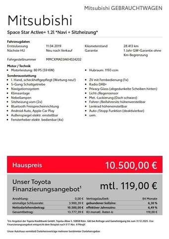 Mitsubishi Space Star Active+ 1.2l MT *Navi + Sitzh.*
