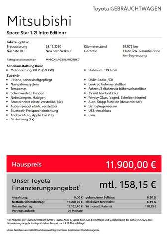 Mitsubishi Space Star Intro Edition+ 1.2 MT *Navi + Sitzh.*