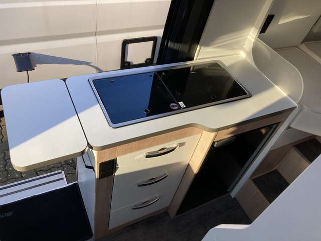 - All-In-One Paket (3,5 t anstelle 3,3 t Chassis, Citroen Motorisierung 120 PS / 89 kW Euro 6d-final, Vollwertiges Ersatzrad (kein Reifenpilot), Metallic Lackierung, Elektrisch beheizbare und verstellbare Außenspiegel, Beifahrerairbag, Tempomat, Traction+, ESP, Hillholder, LED-Tagfahrlicht, Fahrerhausklimaanlage, Stoßfänger vorn in Wagenfarbe lackiert (nicht bei Heavy Version), Nebelscheinwerfer und Kühlergrill in schwarz, Automatische SAT-Anlage mit Receiver, 22" TFT und Wandhalterung, 120 Watt Solaranlage inkl. Laderegler, Thule Dachmarkise in schwarz (bei Aufstelldach Fiamma F45 3,5m schwarz), Thule Fahrradträger 2er Hecktüre (nicht bei 63XL), Multimedia-Paket: Navi, Rückfahrkamera, Radio-DAB+, Freisprecheinrichtung, Bluetooth, uvm., Remis Front-Rollo-Komplettsystem 3-fach, Fahrersitz & Beifahrersitz im Sonderpolster Kunstleder, Fahrerhausteppich, Truma Druckminderer mit Crashsensor, Doppel-USB-Anschluss Hinten und Vorn, Bündige Seitz S-6 Rahmenfenster, Fliegenschutztür für die Schiebetür, Regenrinne inklusive LED-Außenbeleuchtung, Tischplatte alternativ ausschwenkbar, Kompressorkühlschrank 85 l / 90 l, Elektrische Trittstufe inkl. Warnsummer, 16" Alufelgen (bei 120 PS 15" Alufelgen), Truma CP Plus)