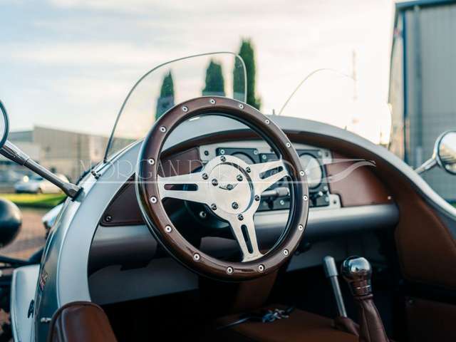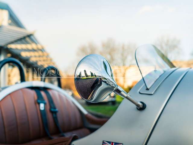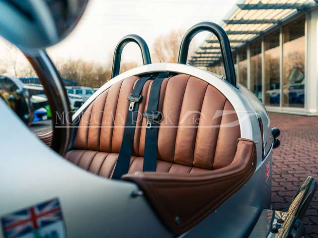 Wir bieten Ihnen einen weiteren Eyecatcher - den Morgan 3-Wheeler in der besonderen Farbkombinationmattsilber mit braunem Interieurleder an.