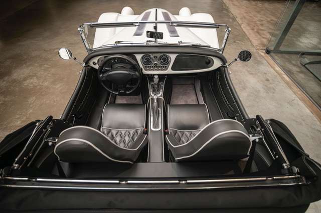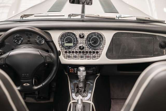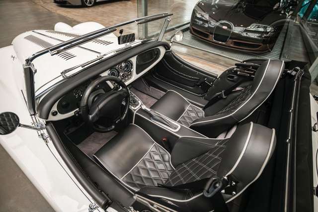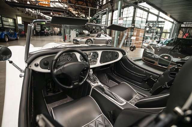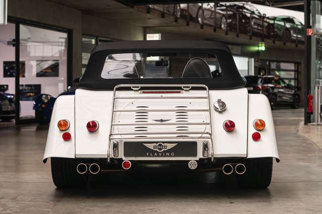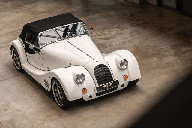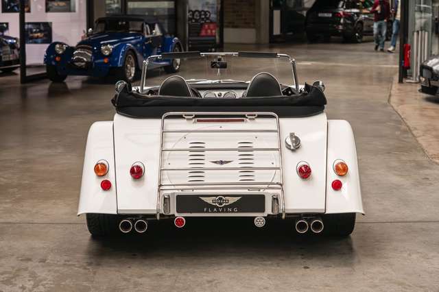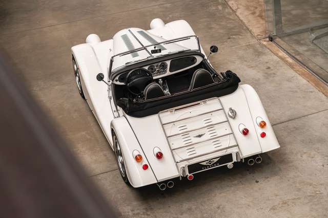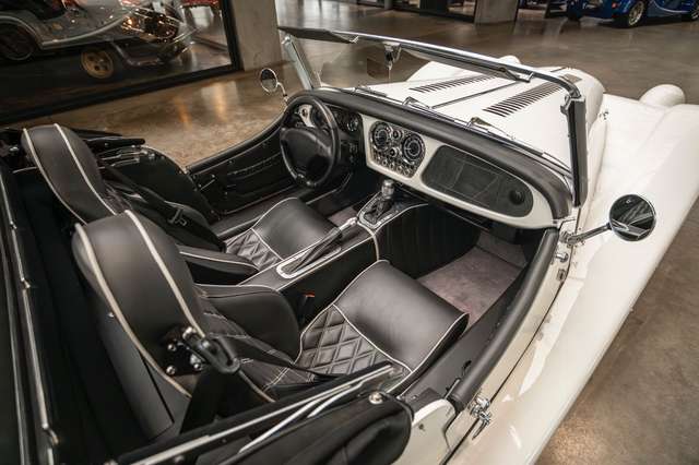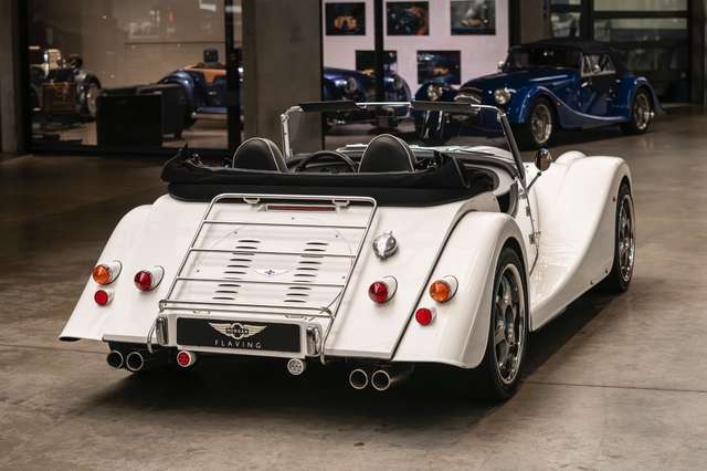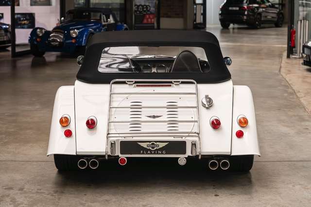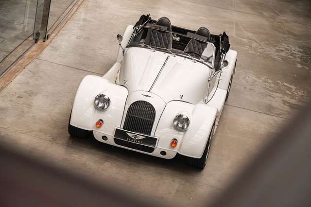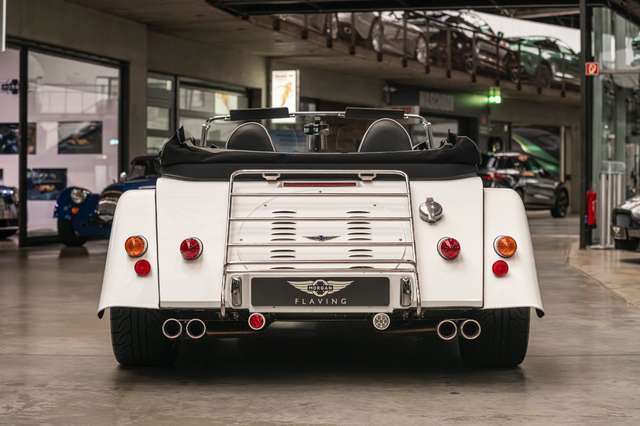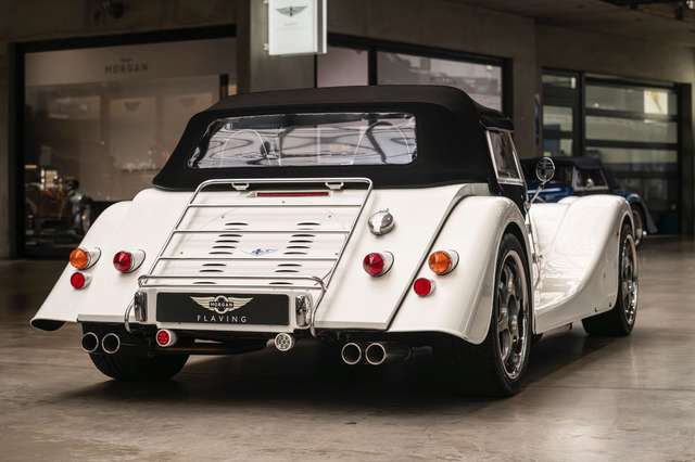 Wir bieten im Kundenauftrag diesen gepflegten Morgan Plus 8 mit dokumentierter Historie an. Der Plus 8 wird angetrieben durch den charismatischen 4.8l V8 von BMW. In diesem Exemplar wurde das ZF 6-Gang Automatikgetriebe als Option gewählt. Lackiert ist das Fahrzeug in Porsche Grandprix Weiß und steht auf 18" Leichtmetallrädern mit poliertem Kranz und Graphitgrau lackiertem Felgenstern. Für kernigen Sound sorgt die Sportabgasanlage von Aero Racing. Für Kontrast sorgt der schwarz lackierte Kühlergrill, sowie das schwarze Mohair Stoffverdeck.