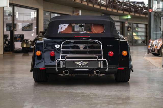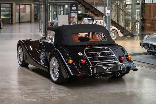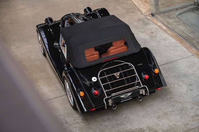 Wir bieten im Kundenauftrag diesen attraktiven und reichhaltig ausgestatteten Morgan Plus Six an. Das Fahrzeug präsentiert sich sehr gepflegt, da es ausschließlich bei schönem Wetter gefahren wurde - entsprechend auch die niedrige Laufleistung. Der Plus Six ist lackiert in Morgan Metallic Black und steht auf Silber lackierten 19" Leichtmetallrädern. Die Front ziert ein polierter Edelstahlkühlergrill mit Schwarz lackierten Grillgittern und 5" Zusatzscheinwerfer. Am Heck ist eine polierte Edelstahl Gepäckbrücke montiert.